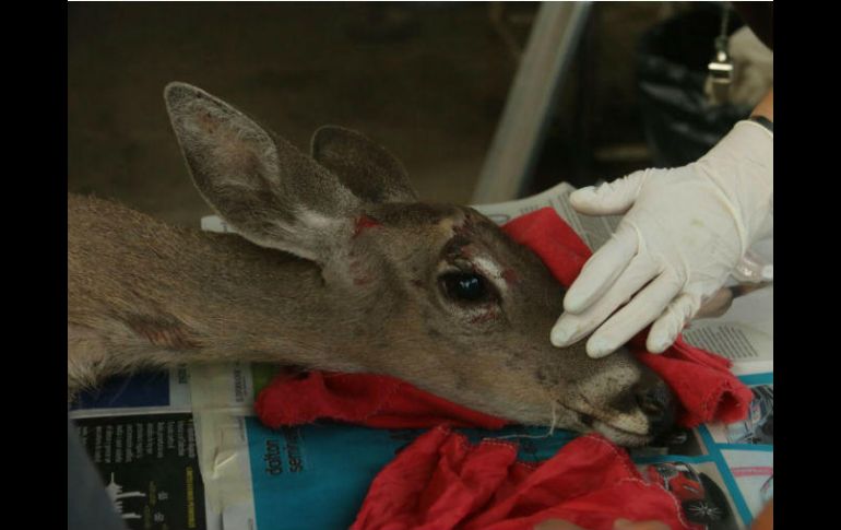 GUADALAJARA, JALISCO (01/JUN/2017).- Esta mañana se encontró un venado con lesiones graves en las inmediaciones de la Villa Panamericana en Zapopan, por lo que se llamó a los elementos de Protección Civil del municipio.Alrededor de las 7:45 horas los bomberos llegaron al punto y localizaron un venado que presentaba lesiones en la cadera y las extremidades posteriores y que ya había sido resguardado por personal del lugar.Al valorarlo, los bomberos consideraron que pudo haber sido atropellado unos días antes y procedieron a trasladarlo al parque zoológico Villa Fantasía para ser atendido por especialistas."Recibimos una venada cola blanca de edad juvenil, típico del Bosque de la Primavera, sufrió daños severos en cráneo y en sus miembros; no sabemos si fue atropellada o si se cayó huyendo de algún evento", explicó la médico veterinaria jefa del departamento, Amada Lotfe Galán."Viene en estado grave a regular, se le aplicó suero y medicamentos y después de las radiografías vamos a valorar cómo se encuentra y qué procede", detalló la veterinaria, quien también añadió que después de un ultrasonido descubrieron que la hembra está en estado de gestación con dos crías.Si sus lesiones no son de gravedad la venada podría estar en recuperación hasta tres meses en el centro, después de eso se contactará a Semarnat y Profepa, los que determinarán si se traslada a un santuario o se regresa a su lugar de origen.