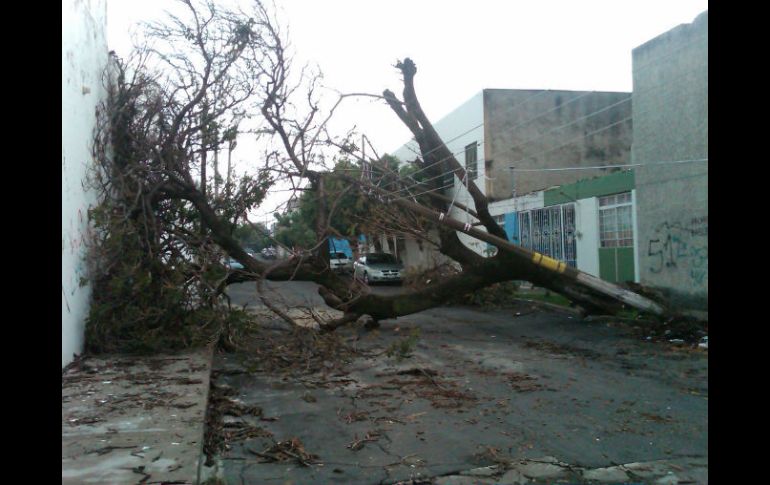 Jalisco | Con su caída, no se reportan personas lesionadas Cae árbol por lluvias, se lleva cableado Con su caída, no se reportan personas lesionadas Por: EL INFORMADOR 14 de julio de 2013 - 09:04 hs El árbol obstruye la totalidad de la calle Pedro de Zavala. / GUADALAJARA, JALISCO (14/JUL/2013).- La intensa lluvia que se precipitó el sábado por la noche comenzó a mostrar sus saldos, en ellos, éste árbol caído, en la calle de Pedro de Zavala, casi esquina con Avenida Revolución. El árbol obstruye la totalidad de la calle, y aunque con su caída no se reportan lesionados, brilla la ausencia de la autoridad para retirar el objeto, que se llevó en su derrumba varios cables de luz. EL INFORMADOR / JUAN FRANCISCO GONZÁLEZ Temas Guadalajara Municipios Tormentas Temporada de lluvias Recibe las últimas noticias en tu e-mail Todo lo que necesitas saber para comenzar tu día Registrarse implica aceptar los Términos y Condiciones