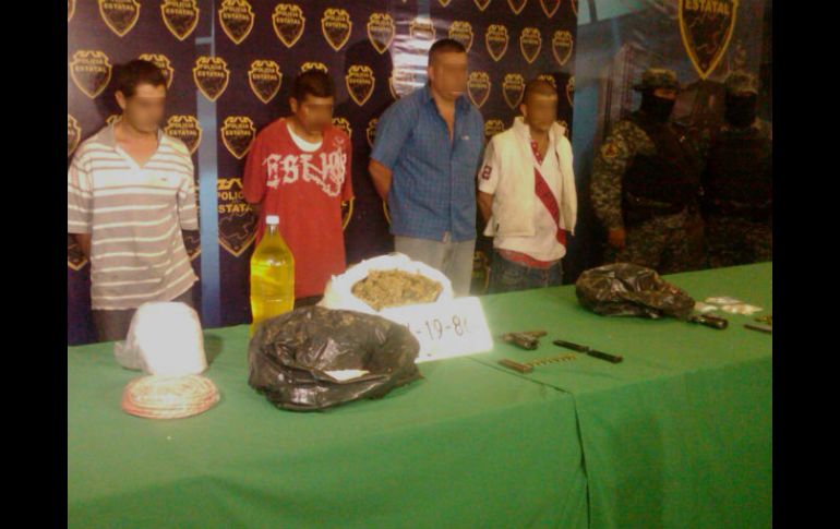 Jalisco | La captura se derivó tras recibir una denuncia anónima Caen cuatro en Magdalena con armas, drogas y explosivos Se les aseguraron armas y cargadores de distintos calibres; un kilo 200 gramos de mariguana y 300 gramos de explosivo conocido como Anfo Por: EL INFORMADOR 3 de agosto de 2012 - 16:04 hs Los detenidos junto con lo decomisado fueron puestos a disposición de la policía estatal. / MAGDALENA, JALISCO (03/AGO/2012).- En el municipio de Magdalena, Jalisco, policías estatales capturan a cuatro sujetos con drogas, armas y material explosivo. La captura se derivó tras recibir una denuncia anónima en la que señalaban gente armada circulando por calles del municipio de Magdalena, por lo que, tras un operativo de elementos de la Dirección General de Seguridad Pública del Estado (DGSPE) lograron la captura de los cuatro sujetos en posesión de pistolas, mariguana y material explosivo. Los ahora detenidos son: Jairo Alejandro Arce , de 31 años de edad; Genaro Espinoza, de 33 años, y Horacio Campa, de 31 años de edad, todos vecinos del municipio de Magdalena. Además de Cesar Edén Correa, de 18 años, con domicilio en Tequila, Jalisco. Al llegar a un punto, los uniformados detectaron dos vehículos: una camioneta Jimmy, color verde, modelo 1998, con placas de circulación JGA-7934, del Estado de Jalisco; la cual era tripulada por tres sujetos, y una Nissan pick up, color blanco, modelo 1996, con placas 7-J-87164 de California, tripulada por un sujeto; a los que los policías le marcaron el alto para realizarles una revisión precautoria. Al inspeccionar los vehículos, los agentes les aseguraron una pistola calibre .380 con nueve tiros útiles; un pistola calibre .22 con tres cargadores y nueve cartuchos útiles; así como también un kilo 200 gramos de mariguana; una bolsa negra con 850 gramos de semilla del mismo enervante; cinco envoltorios con gránulos de cristal con un peso aproximado de 4.6 gramos; así como 300 gramos de explosivo conocido como "Anfo", un rollo de cordón detonante, un rollo de mecha de seguridad y una botella de dos litros con combustible diesel. El material explosivo fue trasladado con las medidas de seguridad por el grupo especializado en esa materia, TEDAX. Los detenidos junto con lo decomisado fueron puestos a disposición de la autoridad correspondiente para realizar las investigaciones. Temas Seguridad Narcotráfico PGJE Lee También Hallan en la Central Camionera de Tlaquepaque a menor desaparecido en Guanajuato Elementos de seguridad detienen a traficante sueco en Cancún Detienen a asesino de joven en partido de futbol Tras persecución policial, localizan 70 kilos de marihuana en Tuxpan Recibe las últimas noticias en tu e-mail Todo lo que necesitas saber para comenzar tu día Registrarse implica aceptar los Términos y Condiciones