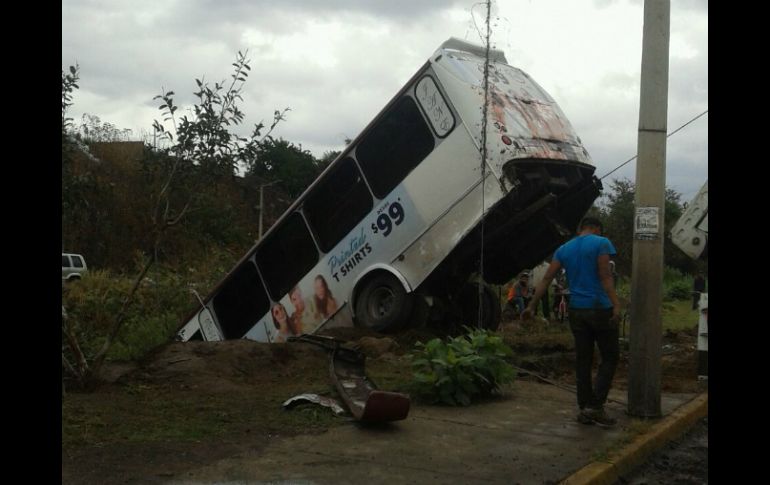 Jalisco | El chofer refiere que trató de evitar un choque y por ello se dio el accidente Camión cae a canal en Patria y Río Nilo; no hay lesionados El chofer refiere que trató de evitar un choque y por ello se dio el accidente Por: EL INFORMADOR 16 de marzo de 2015 - 12:29 hs La extracción del vehículo se prolongó hasta las 13:00 horas. EL INFORMADOR / GUADALAJARA, JALISCO (16/MAR/2015).- Un camión se fue esta madrugada al canal que corre sobre avenida Patria a la altura de Río Nilo, en el municipio de Guadalajara. Según refirió el conductor, la razón del accidente fue que éste trató de evitar un choque. Alrededor de las cinco de la mañana José Antonio Aceves Rosales circulaba en el camión de la ruta 156 con el número económico 678 sobre avenida Patria en dirección Norte. No llevaba pasaje pues esa no es su ruta, sino que se dirigía desde su casa a tomar su derrotero, que va de Huentitán hacia el Centro. Al pasar por debajo del puente Río Nilo, a unos 50 metros, un vehículo Nissan rojo bajó por el entronque a gran velocidad, aseveró Antonio. Al tratar de esquivarlo viró a la izquierda. Sin embargo, en el sitio se llevan a cabo algunas obras de remozamiento, por lo que había un par de montones de trozos de asfalto; el camión se fue hacia uno de ellos en la maniobra. El problema fue que al pasar sobre uno dio un tumbo el vehículo, lo que provocó que el conductor cayera del asiento por lo que el camión siguió su avance sin control rumbo al canal. La unidad de transporte se fue de frente y quedó enclavado en el cauce que, afortunadamente, no llevaba gran cantidad de agua. Sólo con algunos golpes, se dio a la tarea de salir del vehículo por la puerta delantera pues la trasera estaba trabada. Antonio escaló unos 10 metros para salir del lugar y pedir ayuda. Se procedió a la extracción del vehículo con grúas, tarea que se prolongó hasta las 13:00 horas. Temas Seguridad Transporte Público Accidentes Lee También Omar 'N' es vinculado a proceso por presunto abuso sexual infantil agravado Estos son todos los cambios que tendrá el transporte público por el paso de la Romería Detienen a hombre señalado por abusar sexualmente de su hija Policías de Tlaquepaque aseguran contenedores con carga millonaria Recibe las últimas noticias en tu e-mail Todo lo que necesitas saber para comenzar tu día Registrarse implica aceptar los Términos y Condiciones