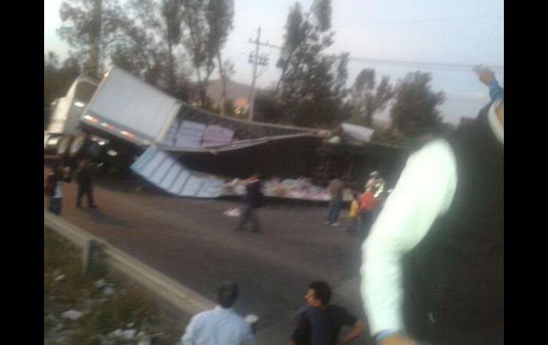 Jalisco | Al parecer el chofer intentó ganarle el paso y fue golpeado por el ferrocaril Camión choca con el tren en Tlajomulco Al parecer el chofer intentó ganarle el paso y fue golpeado por el ferrocaril Por: EL INFORMADOR 9 de diciembre de 2013 - 19:10 hs El accidente provoca tráfico en la zona. Imagen de de @aayyoottll. ESPECIAL / GUADALAJARA, JALISCO (09/DIC/2013).- Un choque entre un camión de refrescos y un tren se registró la tarde noche de este lunes en el municipio de Tlajomulco, informó el director de Bomberos y Protección Civil, Felipe López Sahagún. Fue hacia las 19:00 horas que un camión de la empresa Peñafiel, placas 848-AS8 conducido por Juan Manuel González intentó ganarle el paso al tren en el cruce de Adolf B. Horn y las vías del ferrocarril, en el sentido que va del Periférico hacia avenida Concepción. No obstante, el vehículo no alcanzó a pasar por lo que fue golpeado en una de las esquinas traseras, lo cual provocó que el camión volcara sobre uno de sus costados con todo y refrescos que quedaron derramados en el lugar. La máquina 4071, conducida por Juan Luis Limón González, detuvo su marcha poco después para atender el accidente. Las autoridades no reportaron personas lesionadas. Al sitio arribó personal de Protección Civil, Servicios Médicos Municipales y de la Policía Vial para atender el siniestro que registra tráfico. Temas Seguridad Accidentes Protección Civil Jalisco Lee También Autos con estas placas deben realizar la Verificación Vehicular antes del 31 de octubre Gaby Cárdenas destaca avances en materia de cuidados en su primer año legislativo Reportan carambola en autopista a Morelia Muere conductor tras choque entre camioneta y camión en Arandas Recibe las últimas noticias en tu e-mail Todo lo que necesitas saber para comenzar tu día Registrarse implica aceptar los Términos y Condiciones