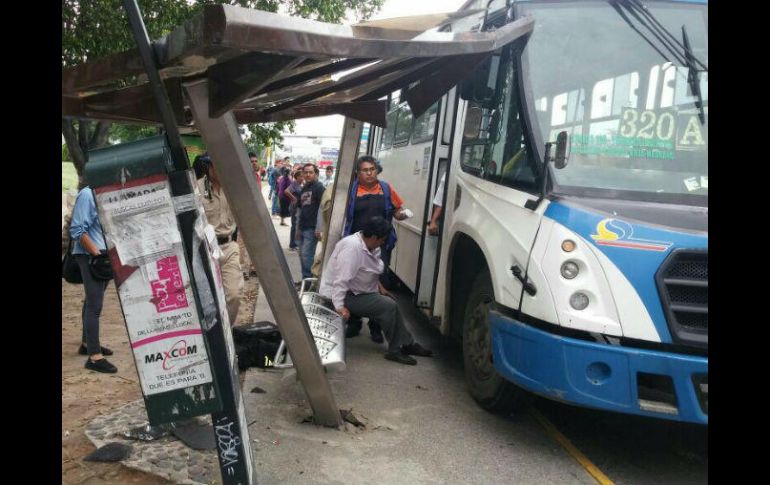 GUADALAJARA, JALISCO (01/SEP/2017).- Un camión de la ruta 320 A, chocó con un parador ubicado en Periférico y la calle Tabachines, en Zapopan.El conductor de la unidad de transporte público terminó impactado en la parte superior del parador dejando daños menores en la estructura metálica y provocando lesiones leves en una persona.Personal de Protección Civil y Bomberos de Zapopan y personal de la Cruz Verde, atienden a la lesionada y realizan la valoración de los daños en el lugar para evitar nuevos accidentes.