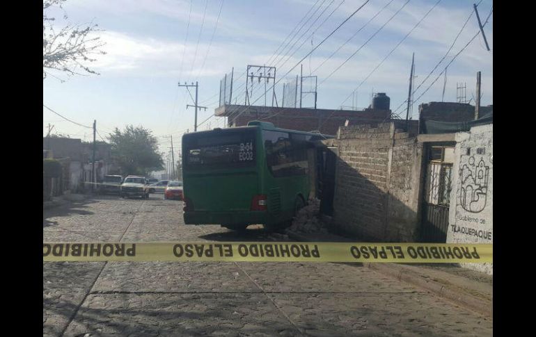 GUADALAJARA, JALISCO (10/ABR/2017).- Una unidad del transporte público se impactó está mañana contra una vivienda en la colonia El Refugio, Tlaquepaque.La Policía Municipal de San Pedro Tlaquepaque informó que cerca de las ocho de la mañana de este lunes un camión de pasajeros sufrió un accidente en Hidalgo, al cruce de Santos Degollado y Morelos, en dicha colonia.Este percance no dejó lesionados, tanto de los habitantes de la casa dañada como del vehículo.La compañía aseguradora arribó al lugar para hacerse cargo de los trámites correspondientes por los daños ocasionados en la propiedad. Se informó que el chofer no fue detenido y los pasajeros se retiraron del lugar sin más contratiempos.