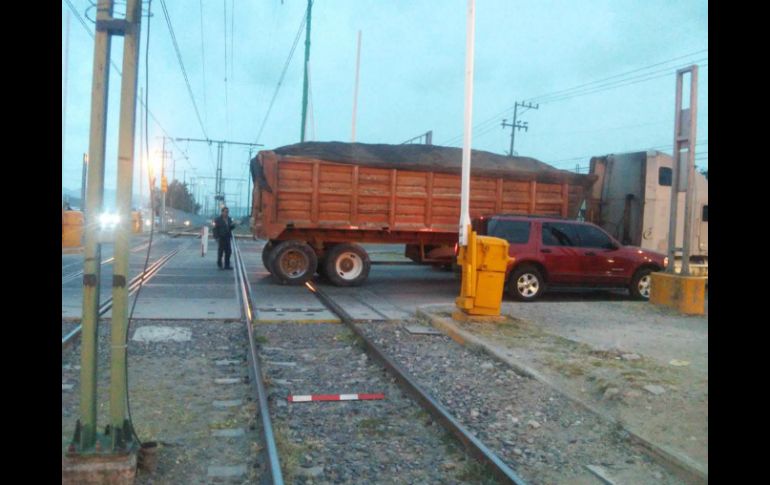 GUADALAJARA, JALISCO (11/NOV/2016).- Un camión de carga atravesado sobre las vías del Tren Ligero, a la altura de avenida del Tesoro, complicó el tráfico sobre la avenida Colón, según reportaron usuarios en redes sociales y a medios de comunicación.Al parecer el vehículo se averió al paso sobre las vías, lo cual afectó el paso del Tren y el tráfico de automóviles sobre la avenida poco antes de las 19:00 horas.Cincuenta minutos después, sin embargo, el Sistema del Tren Ligero confirmó la operación normal del servicio, aunque el tráfico seguía lento, según usuarios.
