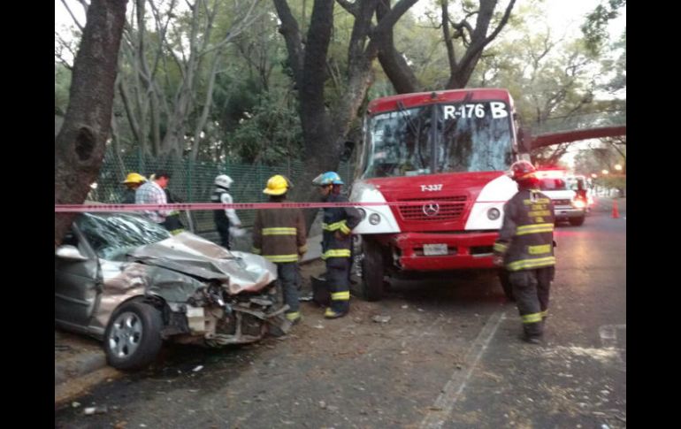 GUADALAJARA, JALISCO (27/ENE/2017).- Esta tarde se registró un choque entre una unidad del transporte público y un vehículo particular en Guadalajara que dejó dos heridos leves, reportó Protección Civil municipal. Alrededor de las 18:40 horas, una unidad de la ruta 176-B circulaba sobre la calzada Jesús González Gallo cuando un automóvil se le cerró en el cruce de la avenida Dr. R Michel. Tras el choque, el vehículo acabó impactado contra un árbol y uno de sus tripulantes resultó con lesiones. Además, un pasajero del autobús también requirió traslado para recibir atención médica. Se solicitó la presencia de agentes del Ministerio Público para deslindar responsabilidades.