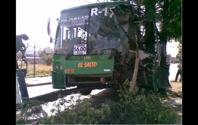 Jalisco | Midibús de la línea El Salto, se estrelló en un árbol de la avenida R. Michel 'Camionazo' deja 28 pasajeros lesionados Midibús de la línea El Salto, se estrelló en un árbol de la avenida R. Michel Por: EL INFORMADOR 18 de mayo de 2014 - 20:27 hs La parte frontal del camión se dañó, mientras que el árbol, se desprendió de sus raíces. ESPECIAL / GUADALAJARA, JALISCO (18/MAY/2014).- Un camión de la línea El Salto, se estrelló en un árbol de la avenida Dr., R Michel, dejando a 28 pasajeros lesionados. El conductor escapó. La tarde de este domingo, elementos del Cuerpo de Bomberos de Guadalajara, acudieron a la citada avenida, en su cruce con la calle Río Reforma, colonia Álamo Industrial, donde encontraron el camión siniestrado en un camellón. El autobús de la ruta 178, con placas de circulación 721-514-G, se dirigían a El Salto, vía El Verde, pero presuntamente, "jugaba" carreras con otro camión urbano, provocando así el accidente. Por el impacto, la parte frontal del camión se dañó, mientras que el árbol, se desprendió de sus raíces. Bomberos y paramédicos de diferentes puestos de emergencias, atendieron a las víctimas, quienes sufrieron heridas que no ponían en riesgo su vida, sin embargo, Joanna Vanesa Guzmán y su hijo de 4 años, fueron llevados a un hospital, ya que resultaron con golpes más graves. Al lugar de los hechos, acudió un agente del Ministerio Público y personal del Instituto Jalisciense de Ciencias Forenses ( IJCF) quienes iniciaron la investigación sobre el accidente. Se presume exceso de velocidad. Mientras que en la zona del percance, el tráfico se vio afectado mientras se realizaban las tareas de atención. Temas Seguridad Transporte Público Accidentes Lee También Helicóptero se desploma en Huntington Beach, California; reportan cinco heridos Tres personas resultan lesionadas tras explosión de camión en carretera México-Puebla Atención, MiBici cerrará 12 estaciones por la Romería 2025 Detienen a asesino de joven en partido de futbol Recibe las últimas noticias en tu e-mail Todo lo que necesitas saber para comenzar tu día Registrarse implica aceptar los Términos y Condiciones