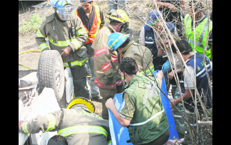 Jalisco | El accidente ocurrió en la carretera Guadalajara-Morelia Camioneta y compacto topan de frente; mueren dos Una familia resulta con lesiones leves; un par de vecinos de Tonaya queda prensado en el interior del vehículo Por: EL INFORMADOR 14 de mayo de 2013 - 03:00 hs DESTRUIDO. Rescatistas trabajan en uno de los vehículos, sobre la carretera Guadalajara-Morelia. EL INFORMADOR / GUADALAJARA, JALISCO (14/MAY/2013).- Los del Pointer sacaron la peor parte. Eran vecinos del municipio de Tonaya. Eran dos hombres quienes fallecieron luego de la colisión de su auto contra una camioneta, sobre la carretera que conduce de Guadalajara a Morelia. Fue durante la mañana de ayer. Apenas amanecía cuando en la citada vía, a la altura de un centro comercial del municipio de Tlajomulco de Zúñiga, el conductor del Pointer blanco perdió el control del vehículo, que circulaba de Sur a Norte, e invadió los carriles contrarios. En pocos segundos se impactó de frente con la camioneta Tahoe, provocando que ambos se volcaran, de acuerdo con elementos de la Policía municipal. Al llegar, rescatistas encontraron a José Carlos Pérez, de 29 años, y a su esposa Aracely Neri Aguirre, de 26, con heridas leves, así como sus a dos hijos. Todos a bordo de una camioneta Tahoe dorada, la cual terminó completamente destruida. En un desnivel de la carretera quedó el compacto blanco, también destruido, y dentro de éste, los dos hombres, sin vida. Uno de ellos aparentaba 45 años, mientras que su acompañante fue identificado por documentos oficiales como Vicente Zúñiga Reynaga, de 69 años, vecino del municipio de Tonaya. Bomberos municipales tuvieron qué hacer varias maniobras para rescatar los cuerpos, ya que se encontraban prensados dentro del auto. El cuerpo de Zúñiga Reynaga y el de su acompañante ya están en la morgue de la Zona Metropolitana de Guadalajara en espera que familiares los reclamen. Temas Seguridad Accidentes con muertes en Jalisco Semefo Lee También Vinculan a proceso a joven implicado en violento robo en avenida Del Mercado Choque en Periférico a la altura de Valdepeñas produce congestión vehicular Asesinan a maestra en Guerrero presuntamente por una calificación Bernardo Bravo había denunciado extorsiones y amenazas Recibe las últimas noticias en tu e-mail Todo lo que necesitas saber para comenzar tu día Registrarse implica aceptar los Términos y Condiciones