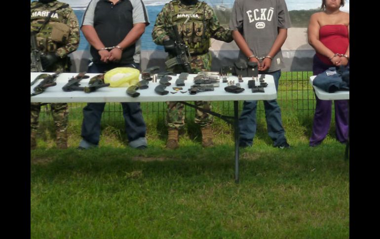 Jalisco | Elementos de la Marina realizaron la detención de los sujetos en Ciudad Guzmán Capturan a cuatro presuntos miembros del cártel Jalisco Los detenidos son presuntos colaboradores directos de Nemesio Oseguera Cervantes, alias 'El Mencho', quien es el líder de dicho cártel Por: EFE 27 de agosto de 2012 - 08:01 hs Se les decomisaron armas, uniformes e insignias de la fuerza pública, vehículos y equipos de comunicación. EFE / GUADALAJARA, JALISCO (27/AGO/2012).- La Marina mexicana detuvo a cuatro presuntos integrantes del cártel de Jalisco Nueva Generación en Jalisco, con armas, uniformes e insignias de la fuerza pública, vehículos y equipos de comunicación. En un comunicado divulgado, la Secretaría de Marina (Semar) informó de la detención en Ciudad Guzmán, Jalisco, de cuatro presuntos integrantes de la organización criminal este domingo. Los detenidos fueron identificados como Raúl Sosa Jiménez, alias "El Búfalo", presunto jefe de célula de sicarios de esa organización criminal, así como María Nélida Flores Reyes, alias "La Gorda", Guillermo Alberto Ramírez Mundo, alias "El Wily", y José Antonio Reyes Mundo, conocido como "El Tres P". Los cuatro son considerados por la Armada mexicana "presuntos colaboradores directos de Nemesio Oseguera Cervantes, alias 'El Mencho', quien es el líder del Cártel de Jalisco Nueva Generación". Versiones no confirmadas señalaron este fin de semana que el capo fue detenido hace dos días en Jalisco pero la información no ha sido confirmada oficialmente. Este domingo otros seis presuntos miembros del cartel Jalisco Nueva Generación murieron en un enfrentamiento con policías en la localidad de Tonaya, en el estado de Jalisco, oeste de México. En el comunicado de la Secretaría de Marina se informa de que a los cuatro detenidos se les encontraron "cinco armas largas y cinco armas cortas, cargadores y cartuchos útiles para arma de fuego, prendas e insignias de policía, insignias militares, dos vehículos, diversos equipos de comunicación" y una sustancia que podría ser la droga conocida como "crystal". El caso ha quedado bajo jurisdicción de la Subprocuraduría de Investigación Especializada en Delincuencia Organizada (Siedo), dependiente de la Procuraduría General de la República (PGR, Fiscalía). Temas Seguridad Operativos de Seguridad Semar Bloqueos en ZMG Lee También Omar 'N' es vinculado a proceso por presunto abuso sexual infantil agravado Autoridades despliegan elementos para apoyar a la población afectada por las lluvias Detienen a hombre señalado por abusar sexualmente de su hija Policías de Tlaquepaque aseguran contenedores con carga millonaria Recibe las últimas noticias en tu e-mail Todo lo que necesitas saber para comenzar tu día Registrarse implica aceptar los Términos y Condiciones
