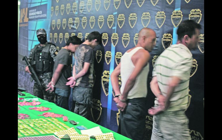 Jalisco | Policías estatales aseguran armas y droga Capturan a cuatro supuestos miembros de cártel Los detenidos negaron tener relación con los bloqueos registrados el fin de semana pasado Por: EL INFORMADOR 30 de agosto de 2012 - 03:03 hs Detenidos. La presentación se llevó a cabo en la base central de la SSP. / GUADALAJARA, JALISCO (30/AGO/2012).- Cuatro hombres que se identificaron como miembros del Cártel Jalisco Nueva Generación (CJNG) fueron capturados por elementos de la Secretaría de Seguridad Pública del Estado (SSP). El subinspector Guillermo Ramírez dijo que en primera instancia la captura de Daniel Delgadillo Castañeda, de 21 años de edad, y José Ángel García García, de 18 años, se dio en el Periférico Manuel Gómez Morín, a la altura de la Colonia San Gaspar, en el municipio de Tonalá. Ellos viajaban en un auto Ford Jaguar X-Tipe, color gris, con placas de circulación JHN-5333, cuando se mostraron sospechosos al paso de una patrulla, por lo que fueron detenidos y dentro del vehículo les encontraron armas de fuego y droga. Ambos jóvenes declararon que trabajaban para dicho cártel, pero que no habían participado en los bloqueos ocurridos el 25 y 26 de agosto, y que su actividad era cuidar una “casa de seguridad”. La segunda detención se logró en el cruce de las calles Granaditas y Emiliano Zapata, en la Colonia Hacienda de Atemajac, en Zapopan, donde fue arrestado Jorge Antonio Carrillo Mendoza, de 34 años de edad. En el vehículo que viajaba fueron localizados 260 envoltorios de plástico con cocaína. La última detención se realizó en la calle Aquiles Serdán y la Avenida Experiencia, en la Colonia Atemajac, en Zapopan, donde fue detenido Luis Alberto Haro Gutiérrez, de 32 años, quien dijo ser narcomenudista del CJNG. Temas Seguridad Secretaría de Seguridad Pública de Jalisco Detenidos en Jalisco Lee También Bienestar inicia censo de afectaciones por lluvias en cinco estados del país Puerto Vallarta en desgracia; tormenta deja daños y un muerto (FOTOS) Calidad del Aire AMG: ¿Cómo amanece la ciudad HOY lunes 13 de octubre de 2025? Paquetazo 3×1: Estos propietarios tienen hasta el 31 de octubre para cambiar placas Recibe las últimas noticias en tu e-mail Todo lo que necesitas saber para comenzar tu día Registrarse implica aceptar los Términos y Condiciones