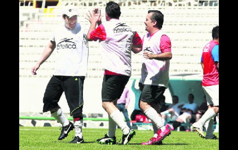 Jalisco | Aristóteles Sandoval juega un partido amistoso con personal estatal y federal ''Cascarita'' cansa al gobernador El Estadio Jalisco fue escenario de la visita de servidores públicos estatales y federales durante un partido de futbol amistoso Por: EL INFORMADOR 2 de mayo de 2013 - 03:07 hs Aristóteles Sandoval sólo jugó parte del primer tiempo y no logró ninguna anotación. ESPECIAL / GUADALAJARA, JALISCO (02/MAY/2013).- El gobernador Aristóteles Sandoval participó ayer en una “cascarita” de futbol en el Estadio Jalisco, junto con personal de varias dependencias estatales y federales. A Sandoval le tocó ser centro delantero de su equipo, pero sólo jugó parte del primer tiempo, al parecer porque el sol de la tarde lo afectó físicamente. No pudo anotar ningún gol. Entre los asistentes estuvieron el secretario de Salud, Jaime Agustín González, y el actual titular del Comité Directivo del PRI Jalisco, Hugo Contreras, quien sí logró marcar a favor de su equipo. Temas Gobierno del Estado Partidos amistosos Estadio Jalisco Aristóteles Sandoval Recibe las últimas noticias en tu e-mail Todo lo que necesitas saber para comenzar tu día Registrarse implica aceptar los Términos y Condiciones