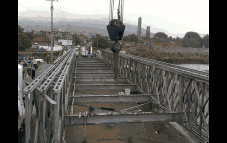 Jalisco | La SCT espera que mañana quede listo para abrir el paso entre Tamazula y Mazamitla Casi armado el puente provisional en Tamazula La SCT espera que mañana quede listo para abrir el paso entre Tamazula y Mazamitla Por: EL INFORMADOR 20 de septiembre de 2013 - 17:49 hs Imagen de los trabajos de armado que realiza la secretaría. ESPECIAL / GUADALAJARA, JALISCO (20/SEP/2013).- La Secretaría de Comunicaciones y Transportes (SCT) confirmó que hasta este viernes, al mediodía, lleva un avance del 85% en el armado de Puente Acrow, para dar paso provisional entre las poblaciones de Tamazula y Mazamitla, por la carretera federal 110 Jiquilpan-Colima. Autoridades esperan concluir el armado de este puente portátil en breve, para que en el transcurso de este sábado se pueda comenzar a dar paso vehicular provisionalmente en este tramo carretero, cuyo tránsito diario promedio es de aproximadamente tres mil 700 vehículos. El pasado lunes, 16 de septiembre, el tránsito por esta importante zona ganadera y agrícola, principalmente cañera y maicera, se vio afectado por las lluvias torrenciales que trajo consigo el paso de la Tormenta tropical "Manuel", y que provocaron el colapso del Puente Contla, en el poblado del mismo nombre, municipio de Tamazula de Gordiano. Temas Vialidad SCT Carreteras de Jalisco Lee También Harfuch y los medios Gobierno federal refuerza combate a extorsión y desapariciones Cartucho Astros de Jalisco toma ventaja sobre Xalapa en la semifinal de zona Recibe las últimas noticias en tu e-mail Todo lo que necesitas saber para comenzar tu día Registrarse implica aceptar los Términos y Condiciones
