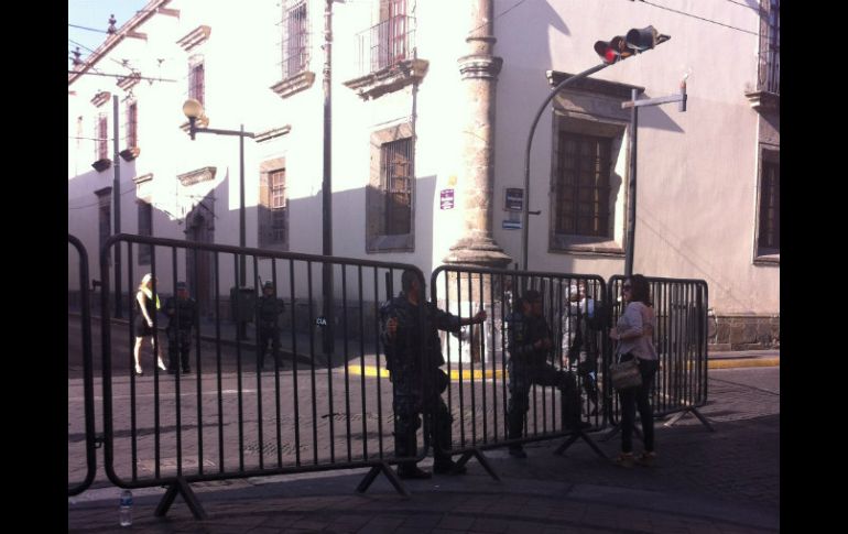 Jalisco | El Congreso de Jalisco está cercado previo a una movilización de comerciantes Cerco en Centro Histórico, ante manifestación de comerciantes El Congreso de Jalisco está cercado previo a una movilización de comerciantes Por: EL INFORMADOR 6 de mayo de 2014 - 08:51 hs Policías impiden el ingreso a las calles que rodean el Congreso local; los transeúntes no obtienen información sobre el cierre. / GUADALAJARA, JALISCO (06/MAY/2014).- El primer cuadro de Guadalajara permanece cercado por elementos policiacos previo a una manifestación de comerciantes que se oponen a la reforma hacendaria vigente y piden derogar el Régimen de Incorporación Fiscal (RIF), para que puedan regresar al Régimen de Pequeños Contribuyentes (Repecos). El Congreso de Jalisco es fuertemente custodiado por rejas, lo que ocasiona el malestar de los transeúntes de la zona quienes han tenido que cambiar su recorrido habitual ante los cierres. Aunado al operativo de este día, los trabajos de demolición en el Mercado Corona colaboran al cierre de las principales calles del municipio tapatío. Hasta el momento no se registra ninguna movilización de manifestantes. Temas Congreso local Manifestaciones en Jalisco Reforma Fiscal Vialidad Centro Histórico Recibe las últimas noticias en tu e-mail Todo lo que necesitas saber para comenzar tu día Registrarse implica aceptar los Términos y Condiciones