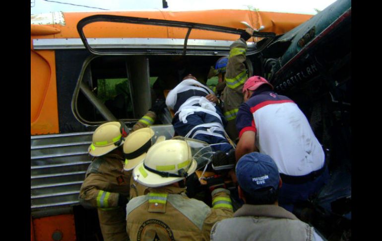 Jalisco | El accidente tuvo lugar sobre la vía que conduce de Valle de Guadalupe a Pegueros Choque carretero entre dos autobuses deja 41 personas heridas El accidente tuvo lugar sobre la vía que conduce de Valle de Guadalupe a Pegueros Por: EL INFORMADOR 13 de julio de 2012 - 10:19 hs Elementos de Protección Civil del Estado realizan maniobras para sacar a las víctimas de los vehículos. ESPECIAL / PEGUEROS, JALISCO (13/JUL/2012).- Un choque entre dos camiones que circulaban por una carretera de la región Altos Norte, ocurrido esta mañana, dejo 41 personas heridas. La Unidad Estatal de Protección Civil y Bomberos Jalisco (UEPCBJ) informó que el accidente tuvo lugar en la carretera que conduce de Valle de Guadalupe a Pegueros, donde se impactaron de frente un camión de la línea denominada Mezcala y un autobús de empleados de una granja. Por el impacto, los pasajeros de ambos automotores resultaron heridos, y quienes fueron atendidos por paramédicos de la UEPCBJ, de la Cruz Roja y de la Unidad de Protección Civil de Tepatitlán de Morelos. Se informó, que tres las víctimas sufrieron heridas de gravedad; todos los lesionados fueron trasladados al Hospital Regional de Pegueros y al Centro Médico Alteño para su atención. Sufren accidente carretero paramédicos Una ambulancia de la Protección Civil de Tepatitlán de Morelos, que acudía atender el accidente carretero, se volcó en el trayecto. Los dos paramédicos que tripulaban la unidad de atención prehospitalaria resultaron herido s ; uno con lesiones leves y otro con heridas consideras como regular. Temas Seguridad Accidentes Protección Civil Jalisco Recibe las últimas noticias en tu e-mail Todo lo que necesitas saber para comenzar tu día Registrarse implica aceptar los Términos y Condiciones