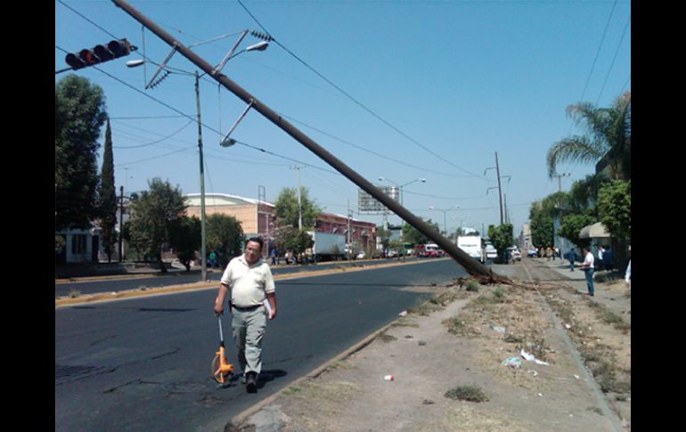 Jalisco | El conductor del transporte perdió el control Choque de camión urbano contra poste deja siete lesionados El conductor del transporte perdió el control Por: EL INFORMADOR 18 de abril de 2011 - 11:57 hs Así quedó el poste de luz después del accidente. M. PATIÑO / GUADALAJARA, JALISCO (18/ABR/2011).- Saldo de siete personas lesionadas en estado regular deja el choque de un camión de transporte urbano el cual se impactó contra un poste de luz de la Comisión Federal de Electricidad ( CFE), que finalmente se venció. El percance se registró este mediodía sobre la avenida López de Legaspi y la Calle 34, en la Zona Industrial de Guadalajara. El chofer del camión perdió el control del automotor y se impactó contra el poste de madera de aproximadamente 15 metros de altura, el cual destruyó desde su base, dejándolo pendiendo de los cables de electricidad, situación que presenta un grave riesgo de colapso. Personal de la CFE arribó al mediodía para valorar los daños. El camión lo abordaban 20 personas, sin incluir al chofer. Paramédicos de la Cruz Roja se trasladaron al punto del incidente para atender médicamente a los lesionados. La vialidad sobre López de Legaspi permanece interrumpida en ambos sentidos desde la Calle 30 hasta la avenida Gobernador Curiel. Se registra carga vehicular." EL INFORMADOR / MARTÍN PATIÑO Temas Seguridad Accidentes CFE Cruz Roja Lee También Policía de Zapopan detiene a cuatro sujetos en cuatro colonias del municipio Reportan carambola en autopista a Morelia Muere conductor tras choque entre camioneta y camión en Arandas Hamás revela nombres de los cadáveres que entregará a Cruz Roja en Gaza Recibe las últimas noticias en tu e-mail Todo lo que necesitas saber para comenzar tu día Registrarse implica aceptar los Términos y Condiciones