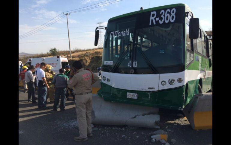 Jalisco | La unidad de la ruta 368 se impactó contra unas barreras de contención Choque de midibús en Tonalá deja cinco lesionados La unidad de la ruta 368 se impactó contra unas barreras de contención Por: EL INFORMADOR 11 de abril de 2016 - 19:58 hs El accidente ocurrió a la altura del kilómetro 8 del nuevo Periférico. ESPECIAL / GUADALAJARA, JALISCO (11/ABR/2016).- Dos personas resultaron lesionadas la tarde de este lunes al impactarse una unidad del transporte público contra unas barreras de contención en Tonalá, informó la Unidad Estatal de Protección Civil y Bomberos. Fue antes de las seis de la tarde que personal de la dependencia y del municipio acudieron a la altura del kilómetro 8 del nuevo Periférico, a la altura de la carretera a Matatlán. Fue una unidad de la ruta 368, número económico 4003, la que se fue hacia la barrera de contención que divide los sentidos. Sin embargo, los lesionados sólo fueron cinco personas que quedaron en estado de leve a regular, los cuales fueron atendidos por personal de la Cruz Verde de dicho municipio. Temas Seguridad Transporte Público Accidentes Lee También Rutas de camiones que detendrán sus recorridos el domingo en la ZMG Detienen a hombre tras persecución en Tlaquepaque Localizan cuerpo en Tlaquepaque Vinculan a mujer que explotaba sexualmente a su hija en Tlajomulco Recibe las últimas noticias en tu e-mail Todo lo que necesitas saber para comenzar tu día Registrarse implica aceptar los Términos y Condiciones