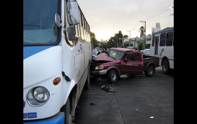 Jalisco | El conductor de una camioneta impactó su vehículo contra un minibús Choque en Avenida La Paz genera caos vial El conductor de una camioneta que circulaba sobre la arteria, a la altura de Chapultepec, impactó su vehículo contra un minibús Por: EL INFORMADOR 24 de junio de 2011 - 07:35 hs Aspecto de los automotores involucrados en el accidente vial sobre Avenida La Paz y casi Chapultepec. C. DESENTIS / GUADALAJARA, JALISCO (24/JUN/2011).- Al filo de las 06:30 horas ocurrió un choque sobre la Avenida La Paz, casi esquina con Chapultepec, donde no hubo lesionados, pero sí un gran congestionamiento vial en la zona. Un minibús de la ruta 51 que estaba estacionado, recibió el impacto de una camioneta Ford Ranger, en color tinto, que se le incrustó en la parte trasera, del lado izquierdo de la unidad de transporte. El chofer del camión buscó de inmediato al responsable, pero este se dio a la fuga. Se presume que el conductor de la camioneta conducía bajo los influjos del alcohol, lo que devino en el accidente que generó severos problemas a la circulación de automotores en el punto, sobre todo en Avenida La Paz. En otra zona de la ciudad, una fuga de agua provocó esta mañana el cierre de carriles al interior del túnel de López Mateos, a la altura de Manuel Acuña, lo que trajo consigo tráfico cargado en el punto. A las 09:00 horas, Protección Civil Guadalajara informó que el desperfecto había sido controlado por la labor de elementos de la dependencia y de personal del Sistema Intermunicipal de Agua Potable y Alcantarillado (SIAPA). Además, Secretaría de Vialidad y Transporte informó vía Twitter que "en ambos sentidos sólo hay un carril para circular, por carriles de superficie, tráfico lento y cargado por dos choques". Temas Avenida Chapultepec Accidentes Vialidad SVyT Lee También Cierran dos tramos de avenida Juárez por caída de un poste y de ramas Bebé sobreviviente a explosión de Iztapalapa comenzará rehabilitación Helicóptero se desploma en autopista de Sacramento, esto se sabe del accidente Derrumbe de edificio en Madrid deja cuatro desaparecidos y tres heridos Recibe las últimas noticias en tu e-mail Todo lo que necesitas saber para comenzar tu día Registrarse implica aceptar los Términos y Condiciones