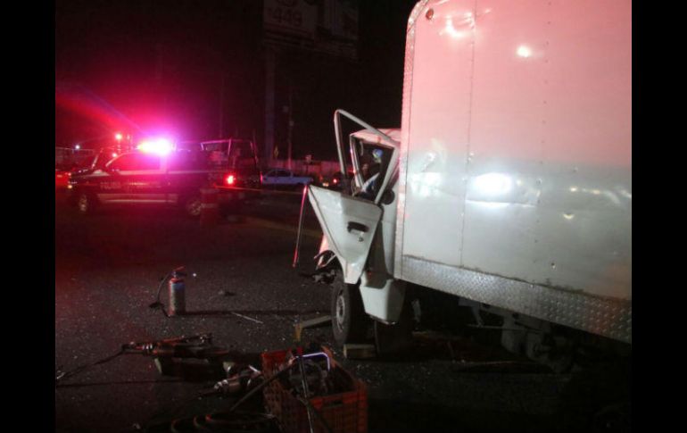 GUADALAJARA, JALISCO (22/ABR/2017).- La madrugada de este sábado una persona falleció luego de impactar contra un tráiler sobre el Periférico Poniente.La Unidad de Protección Civil y Bomberos de Zapopan informó del percance ocurrido poco de las 3:00 de la madrugada, sobre la vialidad ya mencionada, a la altura de Ciudad Granja, en Zapopan.Al arribo de los bomberos al lugar, encontraron un camión de tres toneladas con un hombre de aproximadamente 40 años prensado en el interior, sin embargo, ya había fallecido.Los elementos municipales utilizaron el equipo hidráulico para la liberación del cuerpo que, posteriormente, fue trasladado al Instituto Jalisciense de Ciencias Forenses.Fuentes recabadas por las autoridades refirieron que el camión impactó contra un tráiler, sin embargo, a la llegada de los bomberos ya no se encontraba en el sitio del percance.