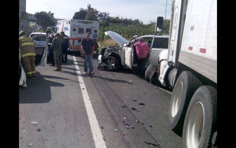 Jalisco | En el accidente participaron cinco autos particulares y un tráiler; hay siete heridos Choque en la autopista Guadalajara-México deja un muerto En el accidente participaron cinco vehículos particulares y un tráiler; hay siete lesionados Por: EL INFORMADOR 9 de agosto de 2015 - 20:28 hs Se cree que la causa del accidente fue porque el conductor del tráiler se quedó dormido; quedó detenido. ESPECIAL / UEPCBJ GUADALAJARA, JALISCO (09/AGO/2015).- A las 16:25 horas de este domingo, se reportó un choque múltiple en el kilómetro 296 de la autopista GDL-México, 250 metros antes de la caseta de cobro de Ocotlán, por lo que personal de la Unidad Estatal de Protección Civil y Bomberos Jalisco (UEPCBJ) acudió al lugar. En el percance participaron cinco vehículos particulares y un tráiler. El saldo fue de ocho heridos y un fallecido. Al arribo del personal se encontró el choque de un tráiler marca Kenworth, modelo 2010, color blanco, doble remolque, placas 967 WD7 del Servicio Público Federal, cargado con azúcar perteneciente, el cual impactó a un automóvil Ford Focus, 2007, color blanco, placas de circulación PPN9818 del estado de Michoacán; un Eurosport blanco, modelo 1989, placas JGH 6478; una camioneta Toyota Rav 4, modelo 2007, placas de circulación JEV 9648; una camioneta Rouge Nissan, modelo 2010, placas JPT 3350; y una camioneta Suburban 2014, placas JLW 4233 de Jalisco, los cuales fueron impactados al bajar la pendiente antes de llegar a la caseta de cobro. Según la guía, el transporte salió de la ciudad de Córdoba, Veracruz, el día de ayer a las 10:00 horas y se dirigía a la ciudad de Puebla, por lo que posiblemente las causas del accidente se deban a que el conductor, Aristeo Rosendo Flores, quien fue detenido por la Policía Federal de Caminos, se quedó dormido. Los oficiales Protección Civil apoyaron en la atención pre-hospitalaria a ocho lesionados de leves a regulares, en coordinación con personal de Bomberos y Protección Civil de Ocotlán, Jamay y Cruz Roja. Desafortunadamente, en dicho percance perdió la vida Brenda Yuseli Asola López, de 23 años, vecina de La Piedad, Michoacán, quien estaba embarazada. Su cuerpo fue entregado a personal de Servicio Médico Forense en espera de ser reclamado por sus familiares. En este servicio también se trabajó en coordinación con oficiales de la Policía Federal, Sedenay personal de la caseta de cobro. Temas Seguridad Accidentes con muertes en Jalisco Protección Civil Jalisco Carreteras de Jalisco Lee También Lluvias dejan 29 muertos en un día en México Astros de Jalisco doblega a Xalapa y se pone a un juego de la Final de Zona Escuela Gómez de Mendiola celebra sus primeros 75 años al servicio de los tapatíos Proyectan expansión de Placencia Muebles Recibe las últimas noticias en tu e-mail Todo lo que necesitas saber para comenzar tu día Registrarse implica aceptar los Términos y Condiciones