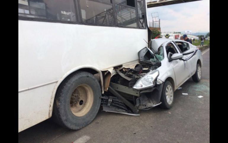 Jalisco | El vehículo particular se impactó en la parte trasera del camión de la ruta 644-B Choque entre auto y midibús provoca caos vial en carretera a Zapotlanejo El vehículo particular se impactó en la parte trasera del camión de la ruta 644-B Por: EL INFORMADOR 30 de julio de 2016 - 16:51 hs El hecho fue reportado hacia las 15:00 horas tras lo que unidades de Servicios Médicos acudieron al lugar. ESPECIAL / GUADALAJARA, JALISCO (30/JUL/2016).- Un hecho vial en el que participó un vehículo particular contra una unidad del transporte público dejó un saldo de cuatro personas lesionadas y un fuerte congestionamiento vial en la vía en dirección hacia Guadalajara, de acuerdo a reportes de autoridades. El hecho fue reportado hacia las 15:00 horas tras lo que unidades de Servicios Médicos acudieron al lugar, en los carriles con sentido hacia a Guadalajara a la altura de Tateposco. En el lugar se encontraba un vehículo Honda Civic plata, el cual se había impactado por la parte trasera contra un midibús de la ruta 644-B, número económico S-2040. Por el hecho resultaron lesionadas tres personas en el vehículo, dos leves y una en estado regular atendida por Servicios Médicos. En el midibús se lesionó una persona más, pero desistió de las atenciones médicas. Se presentó fuerte congestionamiento vial en la zona. Personal de la Policía Vial acudió para deslindar responsabilidades. Temas Seguridad Transporte Público Accidentes Carreteras de Jalisco Lee También ¿Guadalajara se despide de las lluvias? conoce el pronóstico Jalisco refuerza lucha contra el cáncer de mama Mascota, el viaje prometido Charros de Jalisco doblega a Guasave y gana su primera serie de la temporada Recibe las últimas noticias en tu e-mail Todo lo que necesitas saber para comenzar tu día Registrarse implica aceptar los Términos y Condiciones