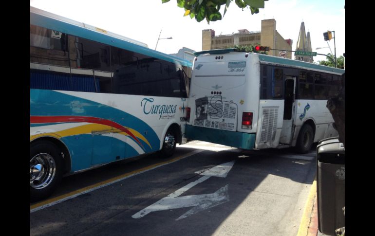 Jalisco | Un camión de la línea Turquesa chocó con un camión de la ruta 37, cerca de San Felipe Choque entre autobuses complica vialidad en avenida Alcalde Un camión de la línea Turquesa chocó con un camión de la ruta 37, a la altura de San Felipe Por: EL INFORMADOR 29 de septiembre de 2014 - 10:19 hs El camión de la ruta 37 daba vuelta hacia la calle de San Felipe. EL INFORMADOR / GUADALAJARA, JALISCO (29/SEP/2014).- Las complicaciones viales no se sienten realmente en la altura de la Glorieta de La Normal, como se había indicado que sería a causa de las labores de la Línea 3 del Tren Ligero; por lo contrario, un choque entre camiones del transporte público es lo que tiene atorados a los vehículos en avenida Alcalde. Un autobús de la línea Turquesa chocó con un camión de la ruta 37, a la altura de San Felipe, el accidente abarca dos carriles de Alcalde y uno de San Felipe. El camión de la ruta 37 daba vuelta hacia San Felipe cuando su parte trasera, y la frontal del Turquesa chocaron, los autobuses aún permanecen ahí, aunque ya hay un agente vial en el lugar del incidente. Se recomienda evitar la avenida desde Manuel Acuña hasta Juan Manuel. Temas Transporte Público Accidentes Vialidad Lee También Cierran dos tramos de avenida Juárez por caída de un poste y de ramas Continúa la entrega de tarjetas Yo Jalisco Apoyo para el Transporte este 9 de octubre Bebé sobreviviente a explosión de Iztapalapa comenzará rehabilitación Helicóptero se desploma en autopista de Sacramento, esto se sabe del accidente Recibe las últimas noticias en tu e-mail Todo lo que necesitas saber para comenzar tu día Registrarse implica aceptar los Términos y Condiciones