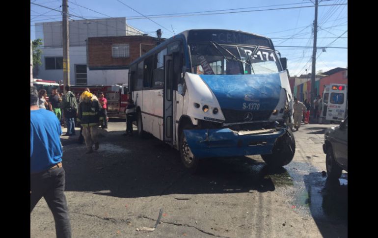 Jalisco | Una unidad de la ruta 171 choca contra un camión suburbano de Transportes Chapala Choque entre camiones deja 17 lesionados Una unidad de la ruta 171 choca contra un camión suburbano de Transportes Guadalajara Chapala Por: EL INFORMADOR 12 de enero de 2016 - 14:12 hs Al sitio acudió personal estatal para realizar las indagatorias sobre el hecho. ESPECIAL / GUADALAJARA, JALISCO (12/ENE/2016).- Un choque entre dos unidades del transporte público dejó un saldo de 17 personas lesionadas, las cuales fueron trasladadas por personal de Servicios Médicos Municipales de Guadalajara y de la Cruz Roja, informó la Unidad Estatal de Protección Civil y Bomberos. Las autoridades recibieron el reporte del hecho hacia las 13:00 horas, tras lo que unidades se desplazaron al cruce de las calles Fray Antonio de Segovia con Río Danubio, en la colonia Atlas, en Guadalajara. Se trataba de una unidad de la ruta 171, número económico S-1370, el cual había chocado por la parte izquierda del frente contra un camión suburbano de Transportes Guadalajara Chapala, número económico 214. En el sitio se contaron 17 personas lesionadas, las cuales iban en estado de leve a regular. Al sitio acudió personal estatal para realizar las indagatorias sobre el hecho y deslindar responsabilidades. Sólo se detuvo al chofer de la unidad suburbana Guadalajara Chapala, toda vez que el de la ruta 171 se fugó. Temas Seguridad Transporte Público Lee También Detienen a presunto homicida en Lomas de Oblatos Hombre es condenado por abuso sexual cometido contra su hijastro Aseguran más huachicol en el municipio de Degollado Presumen reducción de delitos en Jalisco; al alza robo de motocicletas Recibe las últimas noticias en tu e-mail Todo lo que necesitas saber para comenzar tu día Registrarse implica aceptar los Términos y Condiciones
