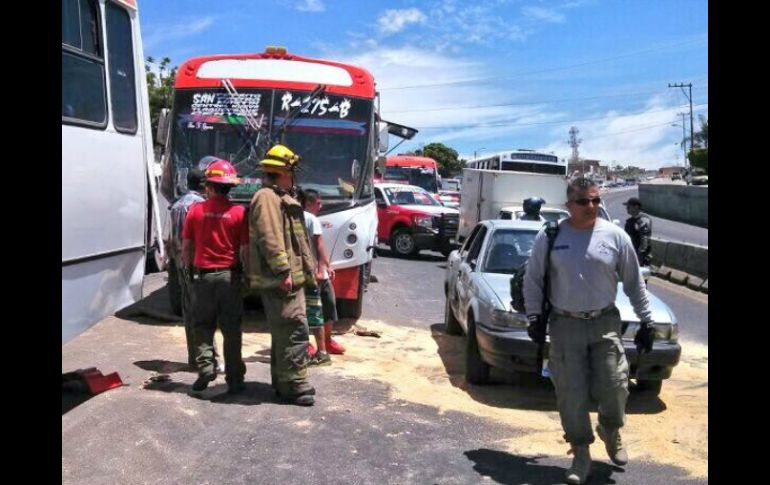 Jalisco | Sucede en la carretera a Saltillo y Agua Fría; ambas unidades son de transporte público Choque entre dos camiones deja 25 heridos en Zapopan Sucede en la carretera a Saltillo y Agua Fría; ambas unidades son de transporte público Por: EL INFORMADOR 17 de abril de 2014 - 12:21 hs El choque entre dos unidades del transporte público de la ruta 275-B dejan como saldo 25 heridos. ESPECIAL / GUADALAJARA, JALISCO (17/ABR/2014).- El choque entre dos unidades del transporte público de la ruta 275-B dejaron como saldo 25 heridos, de estos 15 son adultos y 10 menores de edad, esto ocurrió en la carretera a Saltillo y Agua Fría. A través de su cuenta de Twitter, la Unidad de Protección Civil y Bomberos de Zapopan informó que, acompañados de personal de emergencia, se encuentran en el lugar para atender a los lesionados. Se realizan también labores de limpieza ya que por el impacto hubo derrame de diésel que contenían dichos camiones. Se desconoce hasta el momento cómo ocurrió el percance, sin embargo, la circulación en la zona es lenta y se pide a los conductores evitar la zona de ser posible o tener paciencia en caso de encontrarse en el lugar para poder seguir su camino. Temas Seguridad Transporte Público Accidentes Lee También Estas rutas de camiones presentan retrasos en sus derroteros HOY en la ZMG Edomex anuncia aumento al transporte público; ¿cuánto costará y cuándo aplicará? Reportan carambola en autopista a Morelia Muere conductor tras choque entre camioneta y camión en Arandas Recibe las últimas noticias en tu e-mail Todo lo que necesitas saber para comenzar tu día Registrarse implica aceptar los Términos y Condiciones