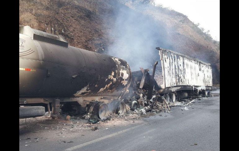 GUADALAJARA, JALISCO (17/JUN/2017).- Un choque entre dos vehículos pesados ocasionó el cierre de un tramo de la carretera a Vallarta, a la altura del kilómetro 60; esto desde las 7:30 horas del sábado.La Unidad Estatal de Protección Civil y Bomberos de Jalisco reportó que un tráiler y un full de dos contenedores llenos de diesel, con capacidad de 31 mil litros cada uno, colisionaron a la altura de Magdalena en sentido Vallarta Guadalajara. De acuerdo con las autoridades el tráiler impactó contra el contenedor trasero, lo que ocasionó el derrame del contenido sobre la cuneta de la autopista y parte del barranco. Además tanto la cabina como el contenedor fueron consumidos por el fuego, lo que ocasionó la muerte del conductor.Al sitio también acudieron elementos de la Policía Federal y de la unidad de Protección Civil Municipal de Hostotipaquillo, así como personal de conservación de la pista. Hasta el momento permanece cerrado el tramo carretero por los trabajos de saneamiento del camino y trasvase del contenedor.Se desconocen datos sobre el estado de salud del conductor del vehículo que transportaba los contenedores cargados con diesel.