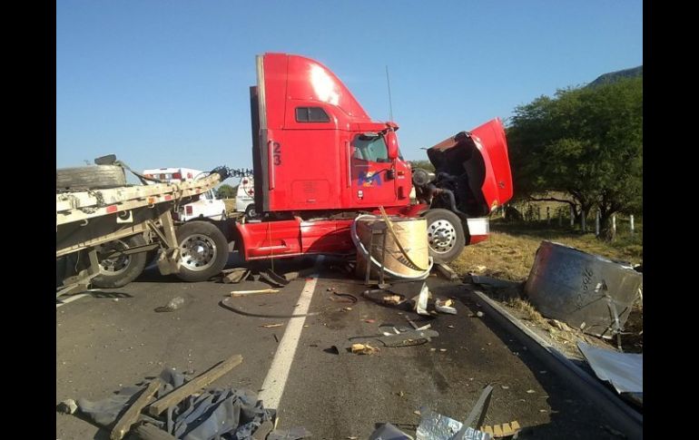 Jalisco | Tres camiones de carga colisionaron a la altura del kilómetro 30 durante la mañana Choque mantiene cerrada la autopista Guadalajara-Colima Tres camiones de carga colisionaron a la altura del kilómetro 30 durante la mañana Por: EL INFORMADOR 14 de abril de 2012 - 13:31 hs El tramo de la autopista Guadalajara-Colima donde se registró el choque aún sigue cerrado a la circulación. ESPECIAL / GUADALAJARA, JALISCO (14/ABR/2012).- Tres tractocamiones colisionaron esta mañana en el kilómetro 30 de la autopista Guadalajara-Colima, a la altura del Municipio de Sayula, lo que provocó que la vía de comunicación permanezca cerrada siete horas después del accidente. Además se reportó un hombre lesionado de manera grave. La "carambola" se registró aproximadamente a las 07:20 horas de este sábado, en el kilómetro 33 de la vía en mención, pero con dirección hacia la Zona Metropolitana de Guadalajara (ZMG), cuando el chofer de un camión de redilas auxiliaba a otro carguero que contaba con dos plataformas de arrastre, vacías, ya que desde kilómetros atrás había tenido problemas en una de las mismas. Fue en ese momento cuando Vicente Santillán Siren, de 55 años de edad, vecino del Estado de México, se impactó en la parte trasera de ambos automotores, en el carguero en que se desplazaba, un tráiler cargado de contenedores con la leyenda "Transportes Marva". Producto del percance, Santillán Siren quedó prensado en la cabina de su carguero por poco más de dos horas, ya que en la zona los servicios de emergencia no contaban con las "quijadas de la vida", artefacto que sirve para liberar a las víctimas de los fierros retorcidos. Tras ser rescatado, los paramédicos de la Cruz Roja detectaron que estaba policontundido, es decir, contaba con golpes en todo el cuerpo; su estado de salud fue reportado como grave, por lo que fue trasladado a un hospital particular de la ZMG. Temas Seguridad Accidentes Carreteras de Jalisco Lee También Esta es la historia del "Marigalante" el barco hundido en Puerto Vallarta Choque en la colonia Aldama Tetlán deja dos lesionados Policía de Zapopan realiza cinco detenciones en una semana Astros de Jalisco doblega a Xalapa y se pone a un juego de la Final de Zona Recibe las últimas noticias en tu e-mail Todo lo que necesitas saber para comenzar tu día Registrarse implica aceptar los Términos y Condiciones