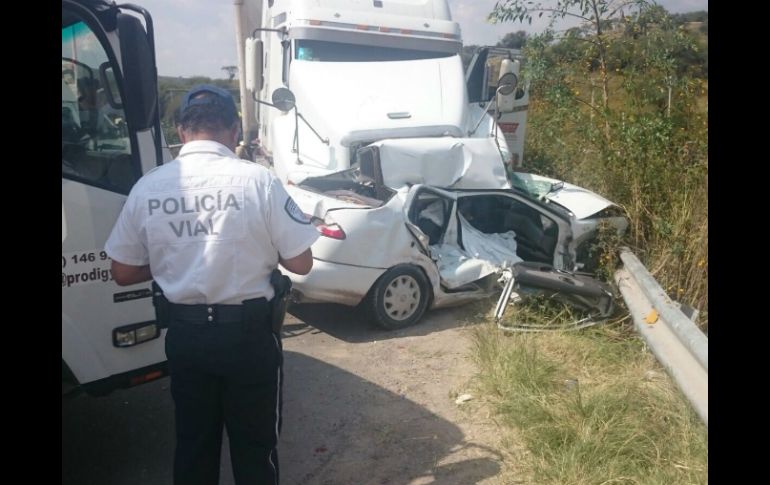 Jalisco | Participaron cuatro vehículos, entre ellos un tráiler que provocó el accidente Choque múltiple en San Juan de los Lagos deja tres muertos Participaron cuatro vehículos, entre ellos un tráiler que provocó el accidente Por: EL INFORMADOR 14 de octubre de 2015 - 18:03 hs El accidente ocurrió en el libramiento de San Juan de los Lagos hacia las 15:00 horas. ESPECIAL / GUADALAJARA, JALISCO (14/OCT/2015).- Tres personas murieron la tarde de este miércoles en un hecho vial que involucró a cuatro vehículos en el municipio de San Juan de los Lagos, informó la Unidad Estatal de Protección Civil. Unidades de la dependencia estatal se dirigieron al libramiento de San Juan de los Lagos hacia las tres de la tarde, toda vez que se reportó un choque múltiple en esa vía. Se trataba de cuatro vehículos los que participaron en el hecho, una camioneta de caja seca, un Tsuru, una Voyager y un tráiler. Según versiones preliminares, el conductor de la camioneta de caja seca se hallaba detenido mientras inspeccionaba el estado de su vehículo cuando en el punto el tráiler impactó al Tsuru. Los vehículos se fueron hacia la camioneta y arrollaron al conductor; después de esto, los tres vehículos terminaron por impactar a la Voyager. Rescatistas encontraron en el lugar muerta a la conductora del Tsuru y lesionada a la copiloto; el conductor arrollado también estaba lesionado, sin embargo, estas dos personas fallecieron durante su traslado a la unidad de emergencias. Por su parte, los tripulantes de la Voyager salieron ilesos mientras que el conductor del tráiler se dio a la fuga. Se dio aviso a Ciencias Forenses para que determinaran las causas exactas del hecho y trasladaran los cuerpos a la morgue. Temas Seguridad Accidentes con muertes en Jalisco Muertes Lee También ¿Cuánto frío hará en Guadalajara HOY por la noche? Teatro Experimental: Cartelera de eventos del 22 al 26 de octubre Alistan nuevas obras de infraestructura vial para Zapopan Boletos disponibles para el partido Atlas vs León en el Estadio Jalisco Recibe las últimas noticias en tu e-mail Todo lo que necesitas saber para comenzar tu día Registrarse implica aceptar los Términos y Condiciones