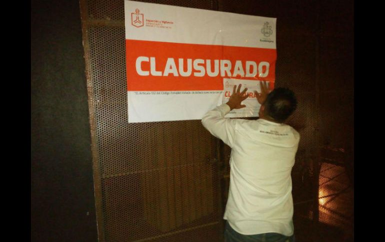 GUADALAJARA, JALISCO (21/MAY/2017).- Otros 20 bares fueron clausurados la noche del sábado y madrugada de este domingo, durante el operativo de supervisión que llevaron a cabo la Comisaría de la Policía de Guadalajara y la Dirección de Inspección y Reglamentos.Con estos, suman ya 34 bares y centros nocturnos sancionados este fin de semana por diversos motivos, como exceder límite de decibeles permitidos, carecer de medidas de seguridad y operaba fuera del horario establecido por reglamentos.El operativo fue realizado en varias zonas de la ciudad, como el corredor Chapultepec, Zona Centro y Providencia, entre otras tantas, informó la comisaría municipal.Durante la noche del viernes y la madrugada del sábado fueron clausurados al menos 14 centros nocturnos y bares con servicio de alimentos.La comisaría municipal informó que estos operativos seguirán llevándose a cabo de forma permanente para garantizar el estado de derecho de a ciudadanía.