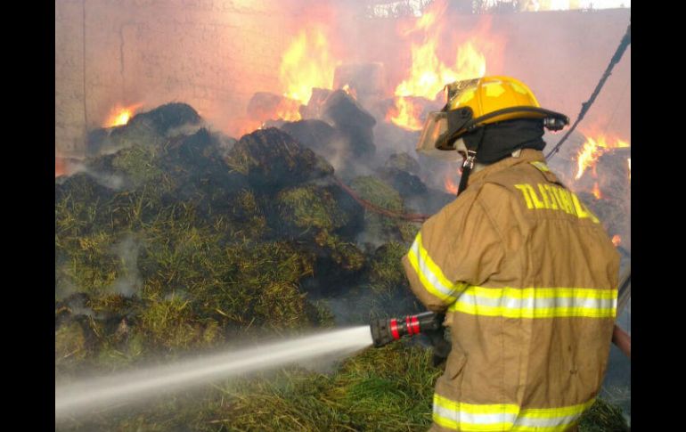 GUADALAJARA, JALISCO (28/ABR/2017).- Esta mañana se registró un fuerte incendio en una bodega de pacas de alfalfa, dentro del rancho conocido como "El Herradero", según reportes de la Unidad de Protección Civil y Bomberos de Tlajomulco.El fuego se originó en un pastizal del área, sin embargo, este se propagó rápidamente hasta llegar a la bodega donde fueron consumidas cerca de 20 toneladas de alfalfa, refirieron las autoridades municipales.Bomberos municipales se encargaron de las labores de extinción del fuego y enfriamiento de la zona; en el lugar no se reportaron personas lesionadas.El percance ocurrió en la colonia San Agustín de Tlajomulco de Zúñiga, sobre la calle Ramón Corona, entre la avenida Real a Colima y la Autopista Guadalajara-Colima.