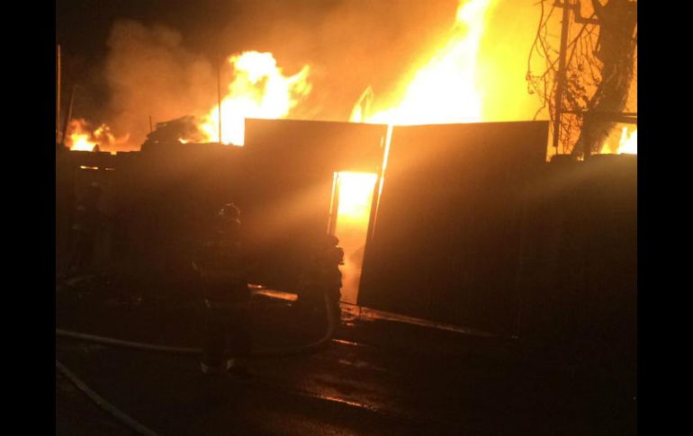 GUADALAJARA, JALISCO (26/ABR/2017).- Bomberos combaten esta noche el incendio que se registra en una maderería ubicada en la colonia Las Juntas, de Tlaquepaque.El siniestro ocurre en el cruce de las calles Las Vegas y Nueva Galicia, y en las labores para controlarlo participan bomberos de ese municipio pero también de otras corporaciones, como Bomberos de Guadalajara y la Unidad Estatal de Protección Civil Jalisco, que intentan evitar que el fuego se extienda a fincas cercanas.Las dependencias no han emitido hasta ahora informes sobre personas afectadas.