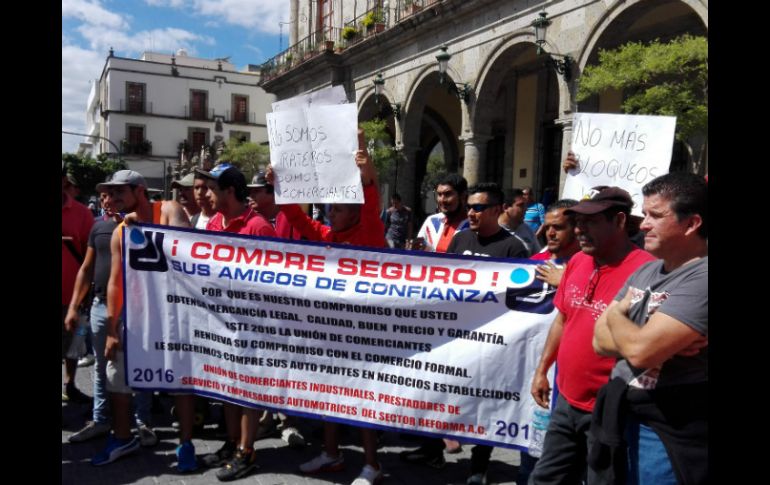 GUADALAJARA, JALISCO (04/NOV/2016).- Para exigir que se abran las vialidades y al grito de “¡Somos comerciantes, no somos rateros!”, comerciantes de la zona de 5 de Febrero de manifiestan fuera del Palacio Municipal de Guadalajara.“Lo que queremos es que nos abran, porque llegaron sin avisar y nos cerraron las calles, así no podemos trabajar y somos alrededor de 200 comerciantes, con todo en orden, somos formales", así lo dijo Antonio Madrigal Quevedo, líder de los manifestantes.Son alrededor de 50 los comerciantes que se plantaron fuera del recinto, en donde tres de ellos ya fueron recibidos por la Secretaría General del municipio.EL INFORMADOR / ELIZABETH MONDRAGÓN