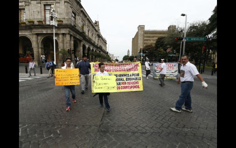 Jalisco | Algunos ya ingresaron a dialogar con autoridades del Ayuntamiento tapatío Comerciantes del Corona liberan vialidades del Centro Algunos ya ingresaron a dialogar con autoridades del Ayuntamiento tapatío Por: EL INFORMADOR 10 de noviembre de 2014 - 13:03 hs Durante más de dos horas bloquearon las avenidas Hidalgo y Alcalde. EL INFORMADOR / A. Hernández GUADALAJARA, JALISCO (10/NOV/2014).- Tras dos horas y media de obstruir las calles de Hidalgo y Alcalde para manifestarse, los comerciantes del Mercado Corona liberaron la vialidad y algunos ingresaron a dialogar con autoridades del Ayuntamiento de Guadalajara. Exigen que se les firme una certeza jurídica de que cuando de construya el nuevo Mercado Corona tendrán un espacio, con las mismas dimensiones que tenían en el inmueble, antes de quemarse. Una hora antes, el secretario de Promoción Económica, José Ruiz Gutiérrez, intentó un diálogo con ellos para que liberaran la calle, pero no tuvo éxito. Minutos después, en el ayuntamiento se permitió el ingreso de algunos comerciantes. Con pancartas en contra del alcalde, Ramiro Hernández García, los comerciantes se dijeron burlados por el ayuntamiento, ya que, según dice el líder de comerciantes Mercado Corona por Siempre, la autoridad beneficia sólo a una mesa directiva de locatarios y a los demás no los han tomado en cuenta. "Todos se preguntan, y estos quiénes son, somos del Corona y queremos solución", gritan los manifestantes, entre los que hay también niños y personas ajenas que también se unieron a la denuncia. Durante la obstrucción de las avenidas, algunos comerciantes vendieron tacos al vapor, pese a que está en contra del reglamento municipal. EL INFORMADOR / THAMARA VILLASEÑOR. Temas Manifestaciones en Jalisco Ayuntamiento de Guadalajara Municipios Centro Histórico Comercio Mercado Corona Recibe las últimas noticias en tu e-mail Todo lo que necesitas saber para comenzar tu día Registrarse implica aceptar los Términos y Condiciones