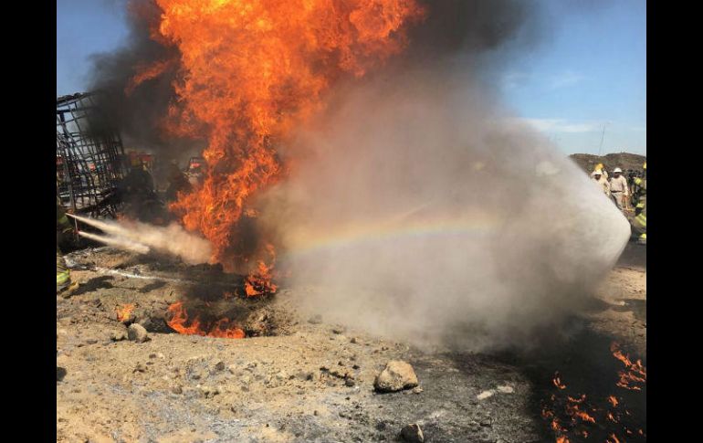 GUADALAJARA, JALISCO (30/MAR/2017).- La rápida coordinación y las condiciones que se presentaron en el lugar favorecieron la rápida extinción del incendio que ocurrió la mañana de este jueves en una toma clandestina en un ducto de Pemex localizado en Tlajomulco de Zúñiga, expuso Luis Rodrigo Arellano Estrada, director de Protección Civil y Bomberos Municipal.El reporte se recibió a las 07:30 horas tras lo que unidades se trasladaron de inmediato al sitio al que se llega por una brecha entre Adolfo Horn y la carretera a Chapala, a unos dos kilómetros de El Zapote hacia el sur. “Vimos que se trataba de un incendio en una toma clandestina de Pemex en una zona despoblada, en el predio de Los Tres Gallos”.Eran dos tomas clandestinas, una que se encontró aún siendo ordeñada y otra más incendiada, junto a la cual se encontraba un camión de tres toneladas totalmente envuelto por las llamas. En ese punto, a unos cinco metros del camión, había una persona calcinada, presuntamente de las que se encontraba en las labores de sustracción ilícita de combustible y que no alcanzó a escapar.Los bomberos se comunicaron con personal de Pemex que cerró las válvulas del ducto Salamanca-Guadalajara. El personal procedió a la colocación de diques de contención y se prepararon para el combate del incendio.Tan pronto como disminuyó la presión de la fuga los bomberos se aproximaron a la fuente del fuego para realizar la primera intervención con extintores de polvo químico seco, espuma para extinción de fuego en hidrocarburos y agua para el control de la temperatura.Fue que en esa primera intervención se logró la extinción del fuego, hacia las 10:05 horas, es decir que en esta ocasión les tomó poco más de dos horas acabar con el siniestro.El director de Bomberos explicó que, a diferencia del reciente incendio en el ducto en Zapopan, que duró alrededor de 24 horas en extinguirse, éste se pudo controlar con tal rapidez gracias a la coordinación y condiciones geográficas.“En Zapopan donde se encontraba la toma clandestina (en una depresión) no permitía el corte de presión del ducto con la misma rapidez que se hizo aquí (en una planicie). Es por eso que aquí se realizó el control de la emergencia en mucho menos tiempo”.Trabajaron 98 bomberos y acudieron 32 unidades de distintas corporaciones, entre pipas, motobombas y pick up: la Unidad Estatal de Protección Civil, Bomberos de Guadalajara, Zapopan, Tlaquepaque, Tonalá y Tlajomulco, Pemex y Servicios Médicos en caso de ser requeridos.