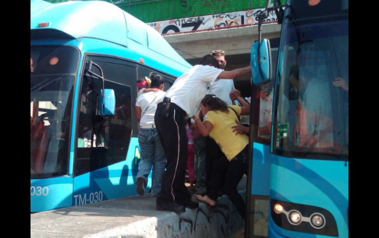 Jalisco | El percance ocurrió en el paso a desnivel de la avenida Gobernador Curiel Conductor invade carril de Macrobús y colisiona El percance ocurrió en el paso a desnivel de la avenida Gobernador Curiel, a su cruce con Washington Por: EL INFORMADOR 11 de junio de 2012 - 16:48 hs Pasajeros del Macrobús fueron reubicados en otra unidad. / GUADALAJARA, JALISCO (11/JUN/2012).- El conductor de una camioneta particular protagonizó, en torno a las 17:00 horas, un choque casi de manera frontal contra una unidad del trasporte articulado. El percance ocurrió en el paso a desnivel de la avenida Gobernador Curiel, a su cruce con Washington; no hubo personas lesionadas. El conductor del vehículo particular indicó que la invasión al carril destinado al Macrobús se debió a una distracción. Al llegar al cruce, dio vuelta en el sendero exclusivo del camión, pero en sentido contrario. Trató de evitar la colisión, sin embargo, el automotor lo golpeó en la parte trasera. Por su parte, el chofer de la unidad TM 032 señaló que en cuanto vio venir la camioneta frente, le echó las luces y activó el claxon; a su vez, también detuvo la marcha del vehículo a su cargo, pero fue inevitable el contacto. Otras dos unidades del Macrobús auxiliaron en el traslado de pasajeros para continuar el servicio, el cual se vio interrumpido luego del choque. La camioneta quedó golpeada en la parte trasera y la unidad en la frontal. El conductor de la camioneta quedó en calidad de retenido para deslindar responsabilidades. Temas Seguridad Accidentes Macrobús Lee También Choque en la colonia Aldama Tetlán deja dos lesionados Policía de Zapopan realiza cinco detenciones en una semana Omar 'N' es vinculado a proceso por presunto abuso sexual infantil agravado Detienen a hombre señalado por abusar sexualmente de su hija Recibe las últimas noticias en tu e-mail Todo lo que necesitas saber para comenzar tu día Registrarse implica aceptar los Términos y Condiciones