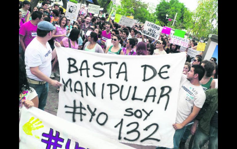 Jalisco | Manifestación desde Avenida Chapultepec Contra la ''imposición'', #YoSoy132 también tomó la calle El contingente asumió las demandas de la convocatoria nacional que circuló por redes sociales, en apoyo a estudiantes de la Universidad Iberoamericana Por: EL INFORMADOR 24 de mayo de 2012 - 03:08 hs La convocatoria estaba dirigida en principio a estudiantes, pero el grupo tapatío fue sumando a ciudadanos a su paso. / GUADALAJARA, JALISCO (24/MAY/2012).- Prometieron un segundo episodio, y lo cumplieron. No sólo eso: la convocatoria en redes sociales para mostrar solidaridad con el movimiento apartidista de la Universidad Iberoamericana demostró su poder con cientos de jóvenes que ayer salieron a las calles tapatías para marcar postura firme contra la “imposición de gobernantes” y contra los medios de comunicación “parciales”. Las pancartas del contingente estudiantil que recorrió la metrópoli recibieron el apoyo de decenas de automovilistas, quienes sonaban el claxon al paso de la marcha caracterizada por el hashtag (etiqueta) #Yosoy132; o bien gritaban palabras de aliento al paso del contingente por la Avenida Chapultepec y por Niños Héroes hasta llegar a la Avenida Alemania, donde detuvo su paso frente a las instalaciones de Televisa. El inicio de la manifestación apenas contó con 200 personas, pero reunió a cerca de mil. Nunca cayó. Creció con coros como “Si hay imposición, habrá revolución”; “La Ibero no está sola” y “Somos prole”. Los cientos de manifestantes fueron escoltados por la Policía de Guadalajara y la Secretaría de Vialidad. Tras establecerse por breves minutos en la televisora local, continuaron hasta Grupo Milenio, en Alemania y Calzada del Águila. “No al monopolio de la información; no al manejo informativo según intereses particulares; no a los medios de comunicación como instrumentos de la politización y la fragmentación social; no a la uniformidad de mente que promueven los medios; no a las alianzas con grupos de poder; no a la criminalización de la protesta; somos más de 131”, gritó Fernando García, uno de los organizadores de la marcha, a través de un altavoz. APOYAN MANIFESTACIÓNHablan en nombre de los desaparecidos Los familiares de quienes han muerto asesinados no son los únicos que se desviven por justicia. Otros padecen un nivel de desesperación mayor: aquellos que no saben dónde están sus hijos. En la marcha de ayer se congregaron algunos de estos, llegados desde más allá de los límites de Jalisco. Lucía Baca y Alfonso Moreno pugnan por el esclarecimiento del caso de su hijo Alfonso Moreno Baca, desaparecido en la carretera Monterrey-Nuevo Laredo el 23 de enero de 2011, mientras conducía en un viaje de placer. Ambos padres han dedicado sus vidas durante los últimos 16 meses a buscar a Alfonso, de 33 años. Han asistido en diversas ocasiones a los contingente del Movimiento por la paz justicia y dignidad, que lidera el poeta Javier Sicilia. No paran. Ayer marcharon en Guadalajara con una lona: “Ya basta, señor gobernador de Nuevo León”. Pero el resultado es el mismo: aún no saben nada de su hijo. “No hay búsqueda. No queremos una búsqueda de papeles, de documentos; queremos una verdadera búsqueda. Es increíble que (haya) tantos desaparecidos y que no hayan encontrado a alguien”, lamenta la madre. Activistas contabilizan en el país más de 10 mil desaparecidos: “Tengan indignación y sorpresa porque parece que tantos muertos y desaparecidos no despiertan las conciencias”, pidió Lucía. El caso de Guadalupe Aguilar no es distinto. Perdió a su hijo de 34 años en Jalisco hace un año y tres meses: “He recorrido toda la República buscando a mi hijo y las autoridades se hacen sordas ante este dolor, ante esta angustia (...) En la Procuraduría lo estigmatizaron de que andaba en malos pasos. ¡Eso no se vale, señores! Mi hijo es un egresado de la UdeG, no fuma, no toma”. Ellas piden que también se pugne por los asesinados, porque aún hay esperanza de encontrarlos y les quita el aliento vivir en incertidumbre. “Los desaparecidos, ¿no cuentan?”. PRESENCIA EN LA MARCHAMovimiento de Sicilia expresa solidaridad Aunque no asistió, el poeta y activista Javier Sicilia envió a la marcha a Roberto Villanueva en su representación para expresar su solidaridad con el pueblo jalisciense. “El Movimiento por la Paz con Justicia y Dignidad (que lidera Sicilia) se solidariza con todos nuestros hermanos jaliscienses que acudieron el llamado de armar la paz. Hoy salimos a las calles para expresar nuestro repudio a los cada vez más crueles actos de violencia y a la incapacidad e indiferencia de las autoridades para solucionar los problemas de inseguridad del estado de Jalisco”, expresó Villanueva, también activista. En el acto se escucharon las voces de madres a quienes la delincuencia les ha arrebatado a sus hijos, quienes acentuaron el dolor que originó la marcha entre los asistentes. Si bien los asistentes fueron principalmente miembros de la comunidad académica de la UdeG, también se dieron cita ciudadanos, familiares de víctimas, representantes de los Hospitales Civiles, del Movimiento por la paz con justicia y dignidad, y candidatos como Augusto Valencia, que busca la alcaldía de Zapopan por el partido Movimiento Ciudadano, sin que hiciera visiblemente actos proselitistas. UNO X UNOLo que se vio en la marcha de la UdeG Cinco contingentes que avanzaron de blanco y en silencio hasta Plaza de Armas. Carteles con las leyendas “armemos la paz”, “ni uno más”, “alto a la impunidad” y lonas con nombres de personas desaparecidas. Centros e hidratación con centenas de empaques individuales con agua para todos. Saldo blanco reportado por policías y bomberos. Temas Manifestaciones en Jalisco Municipios Universidad Iberoamericana #YoSoy132 Lee También ¿Qué exigen los productores de maíz? Aquí te decimos EN VIVO: Maiceros bloquean carretera Guadal