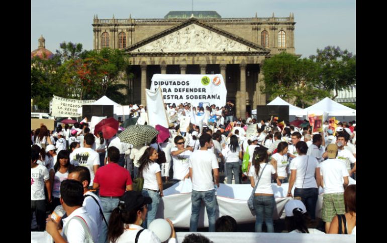 Jalisco | Marchan hasta Plaza de la Liberación a favor de la vida y la familia Convergen 15 mil contra la reforma constitucional Manifestantes firman papeletas que enviarán al senado local para darles a conocer su descontento hacia la iniciativa de ley Por: EL INFORMADOR 14 de mayo de 2011 - 19:50 hs Los manifestantes marcharon desde diferentes puntos hasta la Plaza de la Liberación, donde culminó después de las 19 horas. A. GARCÍA / GUADALAJARA, JALISCO (14/MAY/2011).- Alrededor de 15 mil personas (según el comité organizador) que se pronunciaron a favor de la vida y de la familia, llegaron a las 17:30 horas a la Plaza de la Liberación para hacer fuerte una petición concreta: rechazar la reforma constitucional, que plantea la legalización del aborto y el derecho a tener seguro social a parejas del mismo sexo. La coalición nacional "Mexicanos por la vida" organizó la marcha que partió desde cuatro diferentes ubicaciones: el Expiatorio, La Minerva, La Normal y Plaza de la Bandera, el contingente que partió del primer punto fue el más numeroso, con casi siete mil tapatíos (según la organización). Con mantas de todos tamaños hacían alusión a su deseo de respetar la vida y la familia: "Yo si le voy le voy a la vida", entonaban los manifestantes entre los que figuraban grupos de diferentes congregaciones religiosas, jóvenes y adultos vestidos de blanco. A un costado de la tarima donde los líderes de la coalición externaban los motivos de su movilización, instalaron un par de mesas para recabar firmas de los detractores a la reforma constitucional "se las vamos a enviar a los senadores para que vean que los jóvenes no estamos de acuerdo con el al aborto, las uniones del mismo sexo, que estamos a favor de la familia" alcaró David, uno de los jóvenes organizadores. Su intención es alcanzar al menos 50 mil firmas en Jalisco, que sumadas a las que presentarán otros Estados del país puedan hacer mella a la aprobación de la iniciativa. EL INFORMADOR / VIOLETA MELÉNDEZ Temas Manifestaciones en Jalisco Municipios Reformas constitucionales Lee También Marchas CDMX: HOY, 16 de octubre, estas son las afectaciones viales Estas zonas del AMG presentan MALA calidad del aire hoy jueves Calor y posibles lluvias dispersas para Guadalajara hoy Sin ratificación Recibe las últimas noticias en tu e-mail Todo lo que necesitas saber para comenzar tu día Registrarse implica aceptar los Términos y Condiciones