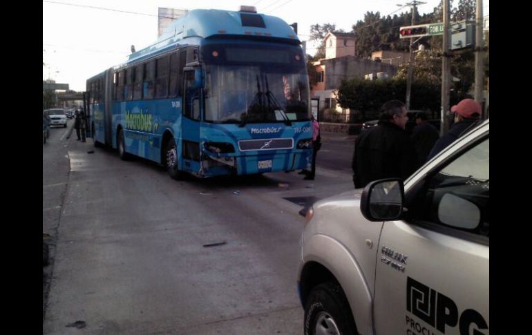 Jalisco | El conductor de un PT Cruiser intentó dar vuelta a la izquiera Cuatro lesionados en choque de Macrobús El conductor de un PT Cruiser intentó dar vuelta a la izquiera, lo cual no está permitido Por: EL INFORMADOR 22 de diciembre de 2012 - 18:27 hs Ambos conductores quedaron en calidad de detenidos, mientras se determina alguna responsabilidad. / GUADALAJARA, JALISCO (22/DIC/2012).- Cuatro personas resultaron lesionadas tras un percance entre un vehículo particular y una unidad del Macrobús. El percance ocurrió en el cruce de la Avenida Gobernador Curiel y la calle Tecolote, en la Colonia Ferrocarril. El conductor de un automóvil PT Cruiser, en color azul, con placas de circulación JPN-6110, del Estado de Jalisco, circulaba sobre la Avenida Gobernador Curiel, en el sentido de Norte a Sur, y al llegar al cruce con Tecolote intentó dar vuelta a la izquierda, lo cual no está permitido, por lo que fue impactado por la unidad del Macrobús, número TM-009, con placas de circulación 719716-G, conducida por Jesús Cervantes López, quien impactó en un costado al automotor. Tras el choque, dos de los ocupantes del automóvil resultaron lesionados, al igual que dos pasajeros del transporte público, quienes fueron trasladados a un hospital en donde fueron reportados en estado de salud estable. Ambos conductores quedaron en calidad de detenidos, mientras se determina alguna responsabilidad. Bomberos municipales realizaron la limpieza en la zona. Temas Seguridad Accidentes Macrobús Recibe las últimas noticias en tu e-mail Todo lo que necesitas saber para comenzar tu día Registrarse implica aceptar los Términos y Condiciones