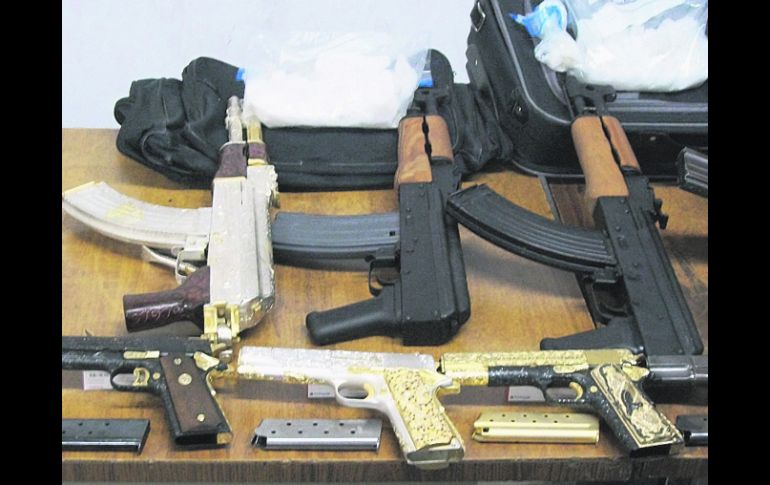 Jalisco | También deberán pagar una multa de 13 mil pesos Dan 11 años de prisión a cuatro sicarios por varios delitos federales Se les acusa de portación de arma de fuego y delitos contra la salud Por: EL INFORMADOR 6 de diciembre de 2012 - 03:10 hs Aseguramiento. Armas que militares encontraron a los detenidos en Tlajomulco de Zúñiga. ESPECIAL / GUADALAJARA, JALISCO (06/DIC/2012).- Cuatro hombres fueron sentenciados a 11 años con tres días de prisión, y a 13 mil 079 pesos con 25 centavos de multa, por la comisión de diversos delitos federales. La resolución va en contra de Jorge Zúñiga Gallegos, José Eduardo Gallegos González, Jesús Figueroa Nava y José Manuel Nava Gallegos, y fue emitida por un Juzgado de Distrito de Procesos Penales Federales en la Entidad. A estas cuatro personas se les comprobó su plena responsabilidad en la comisión de los delitos de violación a la Ley Federal de Armas de Fuego y Explosivos, en sus modalidades de portación de armas de fuego y de posesión de cartuchos de uso exclusivo de las Fuerzas Armadas; y, de contra la salud, en su modalidad de posesión de metanfetamina con fines de comercio. Los hombres, armados, ingresaron a un conjunto habitacional ubicado en Avenida Morelos de la Colonia Los Gavilanes, en Tlajomulco; elementos del Ejército mexicano se trasladaron a la zona para capturarlos. Los sentenciados, al momento de su detención, poseían tres fusiles calibre 7.62x39 milímetros; otros dos calibre .223; dos pistolas calibre .38 Súper, otra calibre .45 y una tercera calibre 9 milímetros. Temas Seguridad Detenidos en Jalisco Lee También Astros de Jalisco toma ventaja sobre Xalapa en la semifinal de zona Detienen a presunto homicida en Lomas de Oblatos Puerto Vallarta es reconocida como la mejor ciudad pequeña de Latinoamérica Suspenden clases en estos 9 municipios de Jalisco ante el paso de tormenta tropical 'Raymond' Recibe las últimas noticias en tu e-mail Todo lo que necesitas saber para comenzar tu día Registrarse implica aceptar los Términos y Condiciones