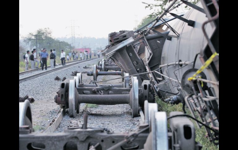 Jalisco | Nueve de los 54 vagones que arrastraba un tren salieron fuera del carril Descarrila tren en El Salto; no hay lesionados Nueve de los 54 vagones que arrastraba un tren con rumbo a Guanajuato salieron fuera del carril Por: EL INFORMADOR 9 de junio de 2011 - 05:50 hs Los vagones del tren iban vacíos, sólo llevaban una sustancia química conocida como tetranolamina. S. NUÑEZ / EL SALTO, JALISCO (09/JUN/2011).- Nueve de los 54 vagones que arrastraba un tren que se dirigía a Guanajuato se descarrilaron ayer. El accidente, presuntamente, fue provocado debido a que gente de la zona roba trozos de metal y tornillos de las vías para venderlos como chatarra. Tras la aparatosa volcadura, que ocurrió sobre las vías que cruzan el Camino a El Salto-Vía El Verde, no hubo personas lesionadas ni daños a fincas. Los contenedores iban vacíos, solamente llevaban restos de una sustancia química conocida como tetranolamina. Temas Seguridad Accidentes Ferrocarriles El Salto Lee También Clima en El Salto hoy: el pronóstico para el viernes 17 de octubre de 2025 Fiscalía habría vinculado a proceso a más de 70 presuntos agresores de mujeres Decomisan coches con reporte de robo y armas en Teocaltiche Bomberos de Guadalajara controlan incendio en Lomas de Polanco Recibe las últimas noticias en tu e-mail Todo lo que necesitas saber para comenzar tu día Registrarse implica aceptar los Términos y Condiciones