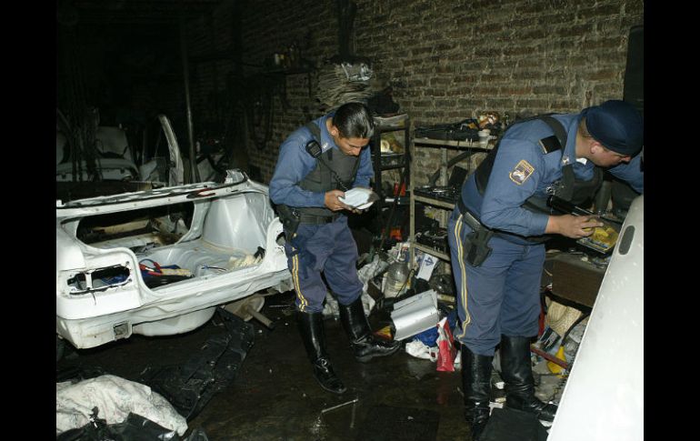 Jalisco | Elementos de la Fuerza Única lograron la detención de cuatro personas relacionadas Descubren chatarrera en El Salto donde se desmantelaban autos robados Elementos de la Fuerza Única lograron la detención de cuatro personas relacionadas con ese lugar Por: EL INFORMADOR 9 de enero de 2014 - 21:48 hs Autoridades hallaron evidencias de al menos nueve vehículos robados. ARCHIVO / GUADALAJARA, JALISCO (09/ENE/2014).- Un negocio de chatarra donde al parecer desmantelaban automóviles robados fue descubierto por elementos de la Fuerza Única Metropolitana la tarde de este jueves, informó la Fiscalía General del Estado. Se logró la detención de cuatro personas señaladas de estar relacionadas con ese lugar. Se trata de Eduardo Mendoza Mojica, de 31 años, vecino de la Colonia Providencia en Tonalá; Felipe Iván Flores Fregoso, de 21 años, de Balcones de Oblatos en Guadalajara; José Luis Mora Aranda, de 41 años, de La Esperanza en El Salto; y José Juan Martínez Cortés, de 36 años, de la colonia Villa Guerrero en Guadalajara. Fue a las 15:00 horas que personal de la Fuerza Única patrullaba por la carretera a El Castillo a la altura del kilómetro 5.68. Vieron entonces que tripulantes de un auto Ford Mustang 1996 se mostraron nerviosos con la presencia policial, por lo que fueron tras ellos. El vehículo ingresó al negocio llamado "Chatarrera Mendoza" donde los interceptaron. En el coche viajaban Iván Flores Fregoso y Mora Aranda; al revisar el auto los elementos hallaron tres medallones de vehículos que contaban con engomados que contenían información. Al solicitar datos sobre los mismos encontraron que contaban con reporte de robo vigente. Las autoridades aseveraron que al cuestionar a los sujetos estos admitieron que se dedicaban a comparar automotores robados, los cuales llevaban a la chatarrera donde los destruían para venderlos después. Eduardo Mendoza Mojica, el propietario del lugar, negó los señalamientos por lo que permitió a los uniformados ingresar a su negocio. No obstante, los policías hallaron cuatro placas, una póliza de seguro y un engomado suelto, los cuales pertenecían a autos también robados; finalmente Mendoza también aceptó los señalamientos. Dentro de la chatarrera también estaba José Juan Martínez, quien junto con Mora Aranda y Flores Fregoso reconocieron ser empleados en el sitio. Las autoridades hallaron evidencias de al menos nueve vehículos robados, la mayoría camionetas GMC cuyos robadas entre diciembre de 2013 y enero de 2014. Los detenidos fueron puestos a disposición del agente del Ministerio Público para seguir las indagatorias. Temas Seguridad Robo de automóviles Fuerza Única Jalisco Lee También Omar 'N' es vinculado a proceso por presunto abuso sexual infantil agravado Inicia entrega de tarjetas Pensión Mujeres Bienestar en Jalisco; ¿cómo y dónde recogerla? DIF Jalisco impulsa campaña de adopciones de niñas, niños y adolescentes SMN advierte: Tormenta Raymond dejará lluvias intensas y fuertes vientos en 4 estados Recibe las últimas noticias en tu e-mail Todo lo que necesitas saber para comenzar tu día Registrarse implica aceptar los Términos y Condiciones