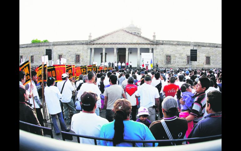 Jalisco | El gobernador dice que está trabajando para mejorar las condiciones laborales Después de 20 años, Gobierno y trabajadores están unidos: Aristóteles Ante cientos de trabajadores, el gobernador del Estado encabezó la celebración en la explanada del Instituto Cultural Cabañas Por: EL INFORMADOR 2 de mayo de 2013 - 03:01 hs Trabajadores de diversos sindicatos se dieron cita para escuchar el mensaje del gobernador en la celebración del Día del Trabajo. EL INFORMADOR / GUADALAJARA, JALISCO (02/MAY/2013).- La explanada del Instituto Cultural Cabañas lució llena. Cientos de trabajadores asistieron a la conmemoración del Día del Trabajo, cada grupo con sus banderas sindicales. Entre integrantes de la Confederación de Trabajadores de México (CTM), de la Confederación Regional Obrera Mexicana (CROM) y la Confederación Revolucionaria de Obreros y Campesinos (CROC), los gritos, porras y aplausos sonaron a multitud. Alrededor de las 8:30 horas todas las banderas fueron ondeadas. Una voz anunció la llegada del gobernador Aristóteles Sandoval, acompañado del secretario general de Gobierno, Arturo Zamora, y del secretario del Trabajo y Previsión Social de Jalisco, Eduardo Almaguer. El pasamanos fue obligado. Los que estaban pegados a la valla pudieron estirarse lo suficiente para darle la mano al mandatario estatal antes de que subiera al estrado. Los otros tuvieron que limitarse a los gritos y, algunos, a verlo a pocos metros de distancia. Ante el micrófono, el gobernador afirmó: “El día de hoy, después de casi dos décadas, estamos reunidos porque unidos vamos a defender la lucha de los trabajadores, porque unidos vamos a mejorar las condiciones”. Sí, los 18 años de gobiernos panistas en el Estado aún son parte de los discursos del mandatario estatal. Junto a él estuvo la plana mayor de las dirigencias sindicales. Rafael Yerena Zambrano, líder de la CTM; Alfredo Barba Hernández, secretario de la Federación Revolucionaria de Obreros y Campesinos —los abucheos se escucharon en las dos ocasiones que lo mencionaron—; Antonio Álvarez Esparza, de la CROC; José Alejandro García Hernández, de la CROM, además del sindicalista Porfirio Cortés Silva. Yerena Zambrano fue el único líder que usó el micrófono. Fue claro: “Sin duda falta mucho por hacer. Sin duda no tenemos nada que celebrar que no sea la esperanza, como lo dije al principio, de un Gobierno emanado de un partido en el cual todas las organizaciones obreras militamos y hemos depositado la confianza en Enrique Peña Nieto para la Presidencia de la República y en Jorge Aristóteles Sandoval para gobernador del Estado de Jalisco”. El discurso incluyó la complacencia por la firma del acuerdo obrero-patronal del pasado 22 de abril, que según Rafael Yerena permitirá aumentar la competitividad del Estado y la calidad de vida de los trabajadores. Hasta puso fecha: dentro de un año, dijo, tendrán que evaluar los resultados. Los aplausos llegaron otra vez cuando Aristóteles, el segundo y último orador del evento, tomó el micrófono. Dijo mucho de lo que ya ha mencionado en otros discursos: que aumente la calidad de vida de los trabajadores; que haya progresos en justicia laboral; mayor capacitación para los integrantes del sector productivo. “No se va a quedar ni en discursos ni palabras, porque llegó la otra de traducirlo en hechos y realidades que se vean cristalizados en beneficio de sus bolsillos”. De detalles, nada. Aún no se sabe cómo serán financiadas las becas para trabajadores y el seguro de desempleo. La única respuesta que se tiene por parte de los funcionarios es que pronto se darán a conocer los pormenores. Todo, hasta el momento, ha quedado en frases como las que el gobernador expresó el día de ayer: “Hoy es una obligación de nosotros dirigir una política que fortalezca la clase media, que tengan lo mínimo necesario para poder ser felices con su familia, que sus hijos tengan oportunidades de estudiar, de acceder a la universidad pública”. LOS MAESTROS PERMANECIERON QUIETOSPiden modificar la Ley de Pensiones del Estado Modificar la Ley de Pensiones del Estado fue una de las exigencias de la Federación General de Trabajadores del Estado y sus Municipios (FGTEM). Ante aproximadamente cuatro mil empleados, que ayer participaron en el Desfile del Día del Trabajo, el secretario general de la FGTEM, Cuauhtémoc Peña Cortés, tomó los micrófonos para pedirle al Congreso de Jalisco que revise la Ley de Pensiones del Estado. A la nueva administración estatal, encabezada por Aristóteles Sandoval, se le pidió que “se serene y respete los derechos laborales”. Además se le solicitó al Gobierno Estatal que sanee el Tribunal de Arbitraje y Escalafón, “escriturado a Juan Pelayo Ruelas”. “Le pedimos al Gobierno del Estado que haga una auditoría de los millones de pesos que le entregó el último Gobierno panista a Juan Pelayo Ruelas, porque es dinero público”. También hubo recomendaciones para los nuevos funcionarios que “no tienen experiencia: les pedimos humildad, que no se les olvide que los panista perdieron —las elecciones— por ese exceso de soberbia, por eso le pedimos al nuevo Gobierno que serene a sus funcionarios”. Las peticiones hechas por Peña Cortés fueron escuchadas por Alejandra Muñoz Ramírez, quien fue una de los aproximadamente cuatro mil trabajadores que ayer participaron en el Desfile del Día del Trabajo. Desde hace 23 años esta mujer trabaja dentro de la función pública; sin embargo, desde hace nueve años participa en el Desfile del 1 de Mayo. Hace nueve años se formó el sindicado al cual pertenece, dijo esta mujer, quien comentó estar dentro de la agrupación le ha beneficiado porque ahora tiene mejores prestaciones laborales. El SNTE no marchó Mientras se montaba el pequeño estrado que daría voz a Flavio Bernal Quezada, secretario de la Sección 16 del Sindicato Nacional de Trabajadores de la Educación (