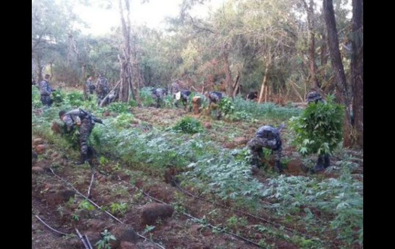 Jalisco | Localizan el sembradío en diferentes predios de la delegación de El Salvador Destruyen más de 36 mil plantas de mariguana en Tequila Son descubiertas durante los recorridos de vigilancia de la Fuerza Única Regional Por: NTX 30 de diciembre de 2015 - 11:13 hs Las plantas tienen una altura de entre 40 centímetros a 1.20 metros. TWITTER / @FiscaliaJal GUADADALAJARA, JALISCO (30/DIC/2015).- La Fiscalía General de Jalisco realizó un operativo en el que localizó y destruyó más de 36 mil plantas de mariguana, sembradas en diferentes predios de la delegación de El Salvador, en el municipio de Tequila. Señaló que el dispositivo se realizó la víspera, durante los recorridos de vigilancia que llevan a cabo los elementos de la Fuerza Única Regional. Detalló que en dicho lugar se detectaron cuatro sembradíos, el primer terreno cuenta con una dimensión de 40 por 50 metros, en el que se aseguraron ocho mil plantas del narcótico. Añadió que el segundo plantío tiene una medida de tres mil metros cuadrados y ahí fueron localizadas 12 mil matas del enervante. Apuntó que, derivado del mismo dispositivo de seguridad, se aseguró un tercer predio de 40 por 80 metros, en donde se encontraron sembradas 12 mil 800 plantas de la droga. Refirió que el último terreno tiene una superficie de 20 por 50 metros y en éste se destruyeron más de cuatro mil matas de mariguana. En total se contabilizaron 36 mil 800 plantas de la droga, con una altura de entre 40 centímetros a 1.20 metros, sembradas en una superficie total de nueve mil 200 metros cuadrados, mismas que fueron incineradas por los elementos de la Fuerza Única Regional. Temas Seguridad Decomisos de droga en Jalisco Mariguana Fiscalía de Jalisco (FGE) Fuerza Única Jalisco Lee También Tras persecución policial, localizan 70 kilos de marihuana en Tuxpan Esta es la historia del "Marigalante" el barco hundido en Puerto Vallarta Policía de Zapopan realiza cinco detenciones en una semana Astros de Jalisco doblega a Xalapa y se pone a un juego de la Final de Zona Recibe las últimas noticias en tu e-mail Todo lo que necesitas saber para comenzar tu día Registrarse implica aceptar los Términos y Condiciones