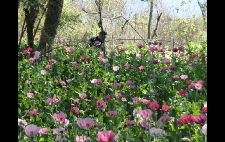 Jalisco | El predio tenía una densidad de 50 plantas por metro cuadrado Destruyen plantío de amapola en Tapalpa El personal federal procedió a su destrucción de forma manual, recolectando muestras representativas de las plantas para el dictamen pericial correspondiente Por: EL INFORMADOR 8 de marzo de 2012 - 08:20 hs En el predio denominado 'La Chirimoya' se incautó el estupefaciente. ESPECIAL / TAPALPA, JALISCO (08/MAR/2012).- Elementos de la PGR localizaron un sembradío de amapola en un terreno ubicado en el municipio de Tapalpa, Jalisco. De acuerdo con el informe de las autoridades, tras una denuncia ciudadana que reportaba el predio denominado 'La Chirimoya' se incautó el estupefaciente. La Fiscalía Federal en coordinación con elementos de la Policía Federal Ministerial, se trasladaron al sitio en mención, donde se localizó un plantío de amapola con una altura aproximada de un 1.5 metros y una densidad de 50 plantas por metro cuadrado. El personal federal procedió a su destrucción de forma manual, recolectando muestras representativas de las plantas para el dictamen pericial correspondiente. Hasta el momento se llevan a cabo las averiguaciones correspondientes para dar con quien o quienes resulten responsables. Policía Federal asegura más de 100 kilos de mariguana Elementos de la Policía Federal Ministerial, en calles del poblado denominado “El Guayabo” del municipio de Pihuamo, Jalisco; aseguraron un vehículo que en su interior contenía 17 paquetes con 105 kilos 565 gramos mariguana. La droga quedó a disposición de las autoridades, mientras tanto se afectúan las indagatorias para aprender a los responsables Las autoridades informan que con este decomiso se evita la comercialización de más de 105 mil dosis del narcótico. Temas Seguridad PGR Decomisos de droga en Jalisco Policía Federal Lee También ¿Cómo y dónde recoger tu tarjeta de la Pensión Mujeres Bienestar en Jalisco? DIF Jalisco impulsa campaña de adopciones de niñas, niños y adolescentes SMN advierte: Tormenta Raymond dejará lluvias intensas y fuertes vientos en 4 estados Jalisco reporta una tendencia a la baja en desapariciones Recibe las últimas noticias en tu e-mail Todo lo que necesitas saber para comenzar tu día Registrarse implica aceptar los Términos y Condiciones