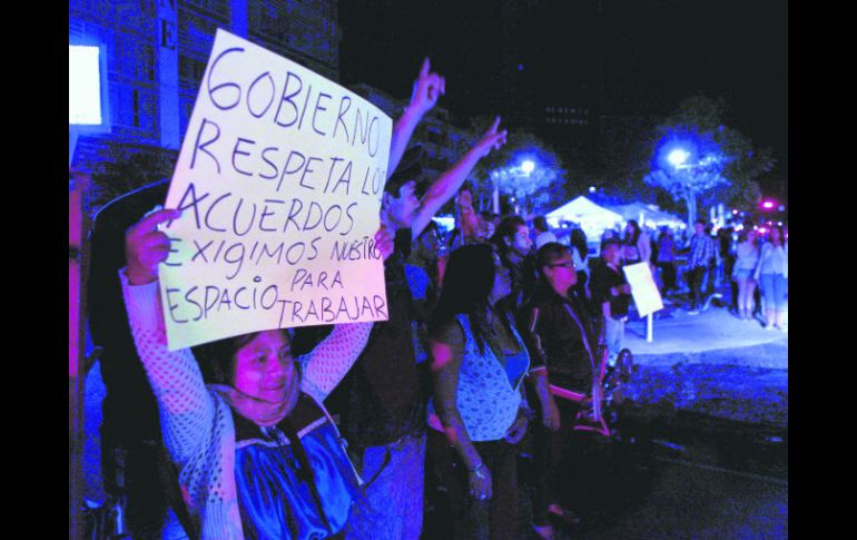 Jalisco | Los ambulantes taparon el paso vehicular para exigir la liberación de sus compañeros Detienen a dos artesanos; prometen liberarlos hoy Cerca de 50 comerciantes de la Unión de Artesanos Yacatecuhtli se manifiestan en Vallarta y Chapultepec Por: EL INFORMADOR 11 de noviembre de 2012 - 02:49 hs Manifestación. Vendedores ambulantes se plantan en Vallarta y Chapultepec. / GUADALAJARA, JALISCO (11/NOV/2012).- Manifestantes de la Unión de Artesanos Yacatecuhtli bloquearon la circulación vial en Avenida Vallarta y Chapultepec, de 21:00 a 23:00 horas, para exigir la liberación de dos de sus compañeros, detenidos por elementos del grupo Lobos de la Secretaría de Seguridad Ciudadana del Ayuntamiento de Guadalajara, informó Carlos Morales Ledesma, representante de la agrupación, que dirige Salvador Cabrera. El grupo de alrededor de 50 comerciantes no establecidos afirmó que a partir del lunes habrá movilizaciones en distintos puntos de la ciudad para exigirle a la autoridad que cumpla su acuerdo: permitirles trabajar como a los otros grupos de ambulantes. El cierre a la circulación comenzó minutos antes de las 21:00 horas y provocó la molestia de los automovilistas, que en varias ocasiones amenazaron a los manifestantes con pasar sobre de ellos. Este bloqueo no fue el primer acto que interrumpió la calma en el Paseo Chapultepec. Alrededor de las 17:00 horas, elementos de la Secretaría de Seguridad Ciudadana de Guadalajara arrestaron a dos comerciantes ambulantes, confirmó la dependencia. Las detenciones se debieron a que los vendedores no establecidos agredieron a los inspectores del ayuntamiento tapatío, quienes les exigían retirarse de la zona, explicó la Policía de Guadalajara. La petición de desalojar la zona, dijo Morales Ledesma, incumplía el acuerdo entre la Unión de Artesanos Yacatecuhtli y la autoridad municipal, ya que se les había permitido ofrecer sus productos los fines de semana en el camellón Chapultepec, entre Montenegro y Mexicaltzingo. Pero, esta tarde se les retiró con “violencia”, según el representante de los comerciantes no establecidos, por lo cual se decidió cerrar a la circulación la Avenida Vallarta, en su cruce con Chapultepec. Morales Ledesma explicó que el retiro de la manifestación respondió a que se le avisó de la liberación de sus compañeros detenidos, por lo cual el grupo de casi 50 artesanos abrió el paso en la avenida. Temas Manifestaciones en Jalisco Ayuntamiento de Guadalajara Municipios Comercio ambulante Lee También ¿LLUVIA en GDL por la noche?, pronóstico del clima para hoy, 10 de octubre Estos son todos los cambios que tendrá el transporte público por el paso de la Romería Jalisco reporta una tendencia a la baja en desapariciones Darán capacitación a ingenieros para transparentar la obra pública Recibe las últimas noticias en tu e-mail Todo lo que necesitas saber para comenzar tu día Registrarse implica aceptar los Términos y Condiciones