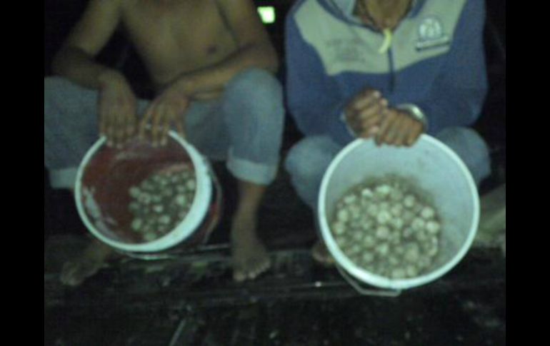 Jalisco | Los hombres fueron capturados en diferentes operativos; tenían en total 212 huevos Detienen a tres por vender huevos de tortuga en Puerto Vallarta Los hombres fueron capturados en diferentes operativos; tenían en total 212 huevos Por: NTX 2 de septiembre de 2015 - 20:01 hs Dos de los detenidos cargaban una cubeta con 175 huevos. TWITTER / @FiscaliaJal GUADALAJARA, JALISCO (02/SEP/2015).- La Fiscalía General de Jalisco informó que, en un operativo conjunto con la Fuerza Única, agentes adscritos a la zona costa norte detuvieron en distintos hechos a tres sujetos acusados de vender huevos de tortuga marina en Puerto Vallarta. Al circular por la avenida Las Palmas, al cruce con Privada Bahía de Santiago, en el fraccionamiento Parque de las Palmas, los agentes investigadores avistaron a un individuo de 40 años, quien llevaba una mochila y en sus manos una bolsa negra de plástico en la que escondía un rifle calibre .22. Al revisar al interior de la mochila los agentes investigadores encontraron una bolsa de plástico transparente con 37 huevos de tortuga marina, además de cuatro bolsitas transparentes con hierba verde al parecer mariguana. En otro punto conocido como Boca de Tomates, en Puerto Vallarta, la Policía Investigadora detuvo a dos individuos que cargaban una cubeta y al hacer la revisión encontraron 175 huevos de tortuga. Tras su detención, los tres individuos quedaron a disposición del Ministerio Público de la Federación quien determinará su situación legal. Temas Seguridad Puerto Vallarta Detenidos en Jalisco Fiscalía de Jalisco (FGE) Lee También Protección Civil reabre el malecón de Puerto Vallarta Detienen a asesino de joven en partido de futbol ¿Cuál era la relación entre el barco pirata hundido en Vallarta y Colón? Así estará Guadalajara por la tarde; ¿lloverá? Recibe las últimas noticias en tu e-mail Todo lo que necesitas saber para comenzar tu día Registrarse implica aceptar los Términos y Condiciones