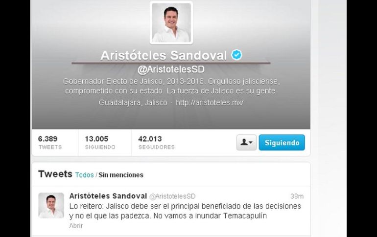 Jalisco | El panista Víctor Sánchez exhortó al gobernador para que no modifique el proyecto Diputado critica anuncio de Aristóteles respecto al Zapotillo El panista Víctor Sánchez exhortó al gobernador para que no modifique el proyecto Por: EL INFORMADOR 1 de febrero de 2013 - 18:36 hs El diputado lamentó que el gobernador electo anuncie decisiones a través de Twitter. ARCHIVO / GUADALAJARA, JALISCO (01/FEB/2013).- El diputado de Acción Nacional, Víctor Sánchez, exhortó al gobernador electo, Aristóteles Sandoval Díaz para que no se modifique el proyecto de la presa El Zapotillo. El legislador consideró que el anuncio que realizó Aristóteles Sandoval vía tuiter de que se bajará la altura de la cortina de la presa para no inundar Temacapulín es una medida populista que afecta el bien común. "Exhorto al gobierno para que reconsidere su postura su idea de suspender el proyecto de El Zapotillo. Es lamentable que se modifiquen proyectos de este tamaño por caprichos personales, esas decisiones obedecen a presiones mediáticas, debemos verlo como un bien común", señaló el panista. El diputado del PAN, lamentó que el gobernador electo, anuncie decisiones a través de Twitter. El legislador, Víctor Sánchez, presentará el exhorto la próxima sesión del pleno del Congreso dirigido al gobernador electo, Aristóteles Sandoval. "Ojalá que (el gobernador electo) no vaya a gobernar a través de tuitazos. Es lamentable que en una cosa tan seria e importante fije su postura en tuiter, no se debería adelantar si asumen el cargo hasta marzo", señaló el priista. EL INFORMADOR / ZAIRA RAMÍREZ Temas Congreso local PAN Jalisco Presa El Zapotillo Aristóteles Sandoval Lee También Trabajadores del SAT se manifiestan en Jalisco Maiceros toman carreteras y autopistas en Jalisco Canelo Álvarez juega papel importante en Guadalajara para Mundial 2026 Más de 400 viviendas en Vallarta tienen pérdida en menaje Recibe las últimas noticias en tu e-mail Todo lo que necesitas saber para comenzar tu día Registrarse implica aceptar los Términos y Condiciones