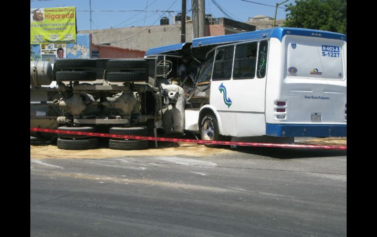 Jalisco | El primer accidente fue en la ruta 380 y el segundo en la 603-A Dos choques del transporte público dejan 10 lesionados El primer accidente fue en la ruta 380; se impactó contra un pilar de un puente peatonal, hay 8 lesionados Por: EL INFORMADOR 12 de abril de 2012 - 15:26 hs Una revolvedora de cemento se volteó sobre su costado derecho, afectando a la unidad del transporte público. / GUADALAJARA, JALISCO (12/ABR/2012).- Saldo de 10 lesionados es el resultado de dos choques en los que participaron unidades del transporte público en la Zona Metropolitana de Guadalajara (ZMG). El primero de ellos ocurrió la mañana de este jueves donde participó un midibus de la ruta 380, el cual se impactó contra un pilar del puente peatonal de la Avenida Colón y Periférico Sur, dejándo ocho personas lesionadas. Los lesionados fueron atendidos por paramédicos de la Cruz Roja. El accidente generó una intensa carga vehicular por Anillo Periférico en dirección de la carretera a Chapala hacia López Mateos. El chofer del urbano con número ecónomico A-2112 quedó detenido; ante las autoridades dijo que perdió el control y eso hizo que se estrellara contra el puente peatonal. Posteriormente, aproximadamente a las 12:00 del mediodía un aparatoso choque se produjo entre una unidad de transporte público y una revolvedora de cemento, de las también conocida como “trompo”. El percance, donde solamente hubo dos lesionadas (una con dolores y la otra por nerviosismo), se registró en la glorieta ubicada sobre la Avenida Belisario Domínguez y la Calle Igualdad, en la Colonia La Federacha del municipio de Guadalajara. El camión de la ruta 603-A, con número económico S-1227, era conducido por Gustavo Alan Barajas, de 24 años de edad, quien circulaba por Avenida Belisario Domínguez, con dirección del Anillo Periférico hacia la Avenida Circunvalación, cuando al llegar a la glorieta ubicada sobre Belisario Domínguez e Igualdad, una revolvedora de cemento con placas de circulación KV-77825, del Estado de México, la cual era tripulada por Francisco Javier Ulloa Marín, de 45 años, se volteó sobre su costado derecho, afectando a la unidad del transporte público en su costado izquierdo. Poco antes del impacto, ambos vehículos avanzaron aproximadamente 15 metros y posteriormente vino el percance. Yesenia Candelaria De León Ramírez, de 19 años de edad, resultó con dolor en cervicales y brazo derecho, mientras que Lucía García Rocha únicamente se asustó, sin embargo, presentó hiperglusemia e hipertensión. Ambas se desistieron a la atención médica y no fueron llevadas a ningún puesto de socorro. La zona de la glorieta fue cerrada en su totalidad a partir de una cuadra de distancia por pocomás de dos horas. Temas Seguridad Transporte Público Accidentes Lee También Hombre es condenado por abuso sexual cometido contra su hijastro Aseguran más huachicol en el municipio de Degollado Presumen reducción de delitos en Jalisco; al alza robo de motocicletas Cierran dos tramos de avenida Juárez por caída de un poste y de ramas Recibe las últimas noticias en tu e-mail Todo lo que necesitas saber para comenzar tu día Registrarse implica aceptar los Términos y Condiciones