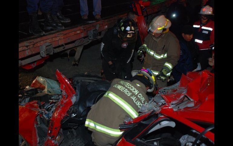 Jalisco | En accidente ocurrió en el tramo que va de Ciudad Guzmán hacia Zapotiltíc Dos muertos tras choque carretero Ocurrió a la altura del kilómetro 25 de la Carretera Federal número 54, en el tramo que va de Ciudad Guzmán hacia Zapotiltíc Por: EL INFORMADOR 26 de noviembre de 2011 - 16:54 hs Oficiales de la Unidad Estatal de Protección Civil y Bomberos Jalisco, brindaron el apoyo requerido. / ZAPOTLÁN EL GRANDE, JALISCO (26/NOV/2011).- Saldo de dos fallecidos e igual número de personas gravemente lesionadas y prensadas, es el resultado del choque registrado durante los últimos minutos de la noche del pasado viernes, en el municipio de Zapotlán El Grande, Jalisco. El percance ocurrió a la altura del kilómetro 25 de la Carretera Federal número 54, en el tramo que va de Ciudad Guzmán hacia Zapotiltíc, por lo que de inmediato oficiales de la Unidad Estatal de Protección Civil y Bomberos Jalisco ( UEPCBJ), destacamentados en la Base Regional Ciudad Guzmán, salieron a prestar el apoyo requerido, ya que les mencionaban de varios lesionados y personas prensadas. Por lo que al arribar al sitio se percataron que se trataba de un choque entre un Volkswagen tipo Gol, en color rojo, modelo 2010, con placas de circulación JHJ-2196, del Estado de Jalisco, que era conducido por German Farías Munguía, quien quedó prensado y con lesiones de gravedad dentro del automotor, por lo que de inmediato se realizaron labores para rescatarlo de entre los restos de su vehículo, en coordinación con los Bomberos de Zapotlán el Grande, y que así pudiera ser trasladado de urgencia al Hospital Regional del IMSS en ese municipio. De igual manera, Carlos Rogelio Rodríguez Orozco, de 27 años, quien también resulto con heridas considerables. En el mismo vehículo, también quedó prensada Gabriela Farías Munguía, de 26 años de edad, pero lamentablemente no pudo sobrevivir al fuerte impacto, igual que el joven de 19 años quien llevaba el nombre en vida de Osvaldo Jovani Bautista de Martínez. El otro vehículo involucrado es un tráiler de la marca International, en color blanco, con placas de circulación 717-DY5, del Servicio Público Federal (SPF), con razón social “ROD Almacenes”, cuyo conductor de nombre José Antonio logró salir ileso del percance ya que el vehículo compacto se impactó en la parte lateral de la caja del camión de carga pesada. En el lugar se trabajo en coordinación con la Cruz Roja Mexicana, Seguridad Publica y Protección Civil de Zapotiltic y del Estado. Temas Seguridad Accidentes con muertes en Jalisco Protección Civil Jalisco Cruz Roja Recibe las últimas noticias en tu e-mail Todo lo que necesitas saber para comenzar tu día Registrarse implica aceptar los Términos y Condiciones